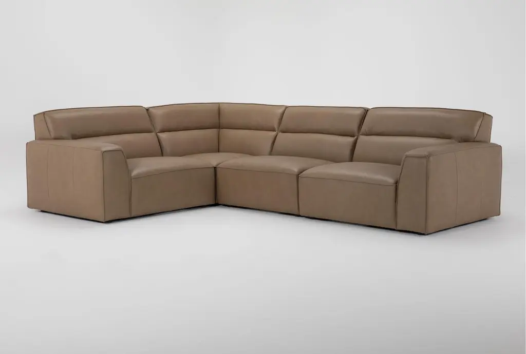 Rhone 122" Light Brown Beige Leather 5 Piece Modular L-Shaped Sectional & Ottoman Set | Reversible