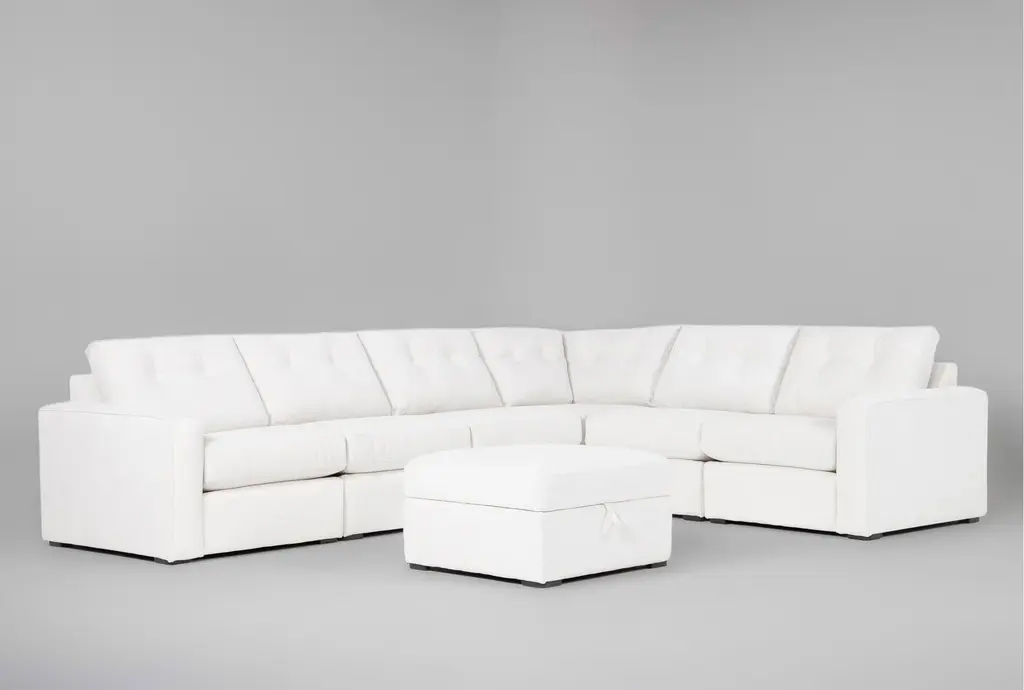 Rincon Cream 3 Piece Sectional With Left Arm Facing Tux & Right Arm Facing Chaise & Ottoman