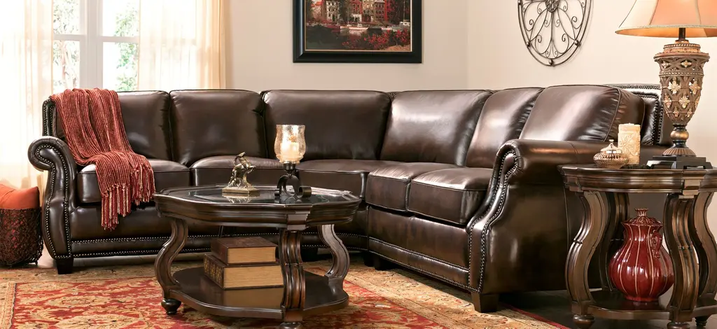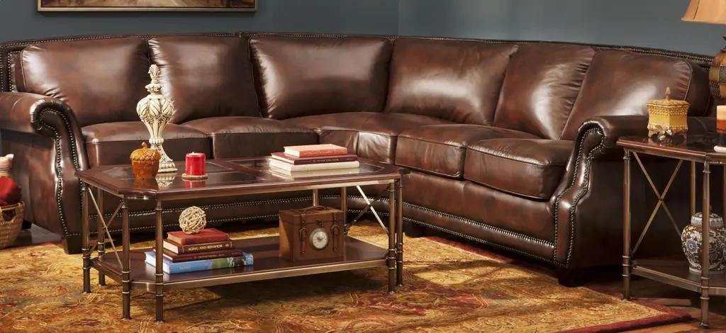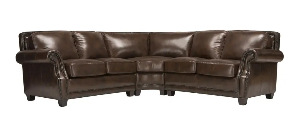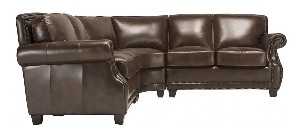 Taking its cues from the classics, this Romano 3-piece leather sectional sofa champions a timeless traditional look. Luxe leather-match upholstery in an antique tobacco color gives the sectional a distinguished vibe, while elegant touches, like roll arms, nailhead trim and topstitching, attest its exquisite attention to detail.Taking its cues from the classics, this Romano 3-piece leather sectional sofa champions a timeless traditional look. Luxe leather-match upholstery in an antique tobacco color gives the sectional a distinguished vibe, while elegant touches, like roll arms, nailhead trim and topstitching, attest its exquisite attention to detail.
