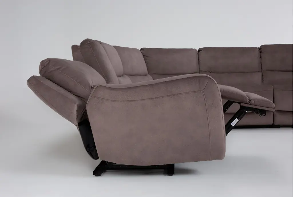 Consider our Ryder power reclining modular sectional your new relaxation destination. Built for comfort, it features divided backs and seating with 2.0-density foam and Dacron wrap to provide equal parts support and softness. Faux leather upholstery is smooth and durable, while power motion allows you to adjust your position at the touch of a button. Flexible modular design opens up multiple configuration possibilities and USB charging lets you charge up while winding down.