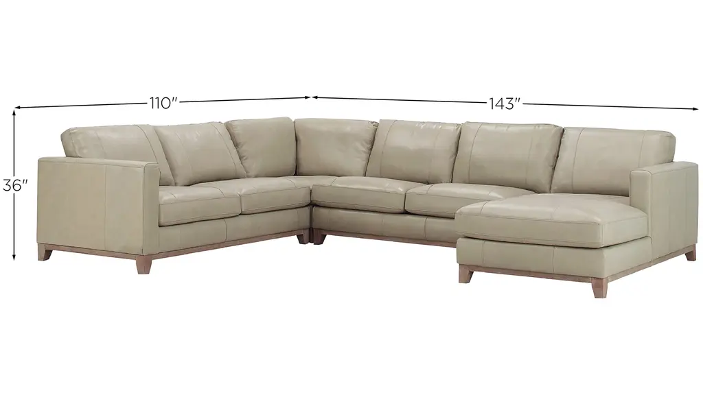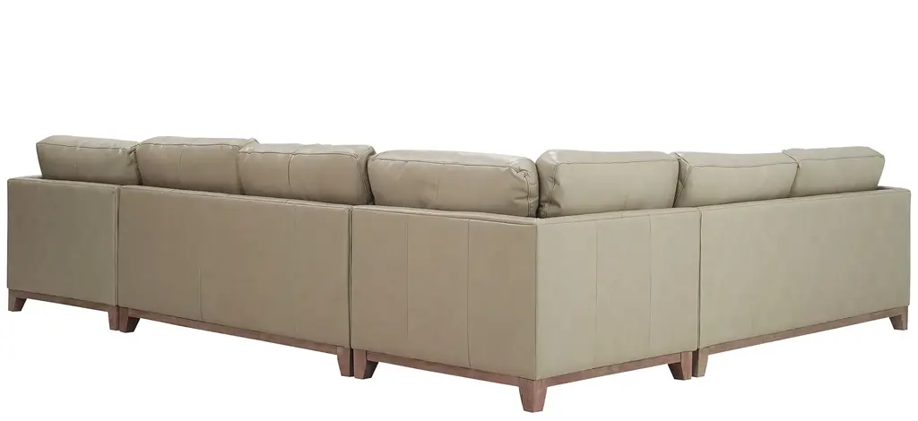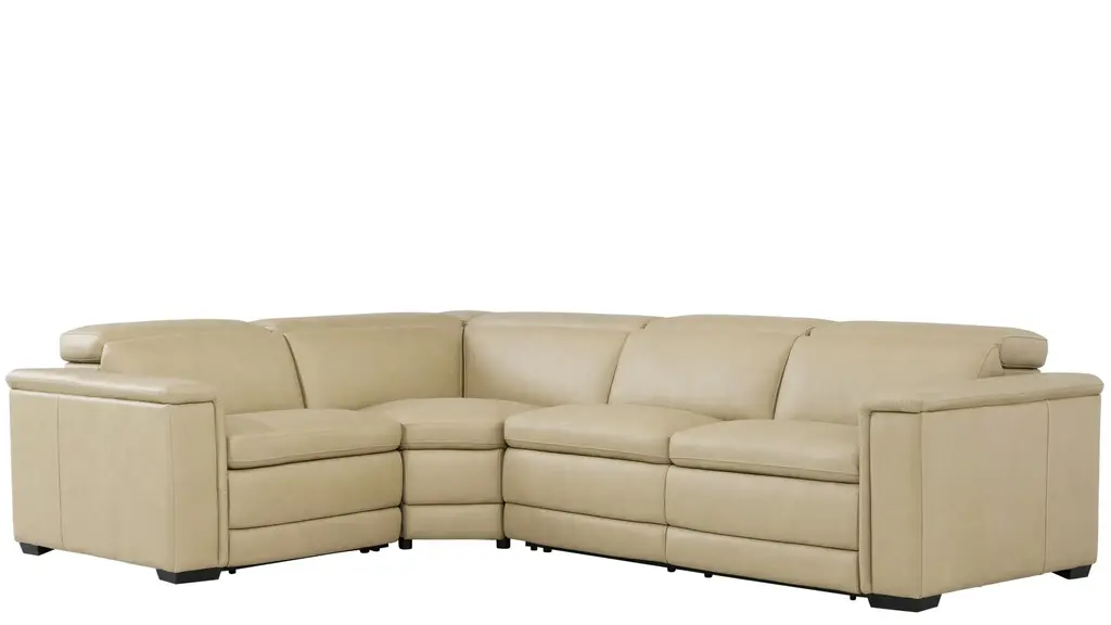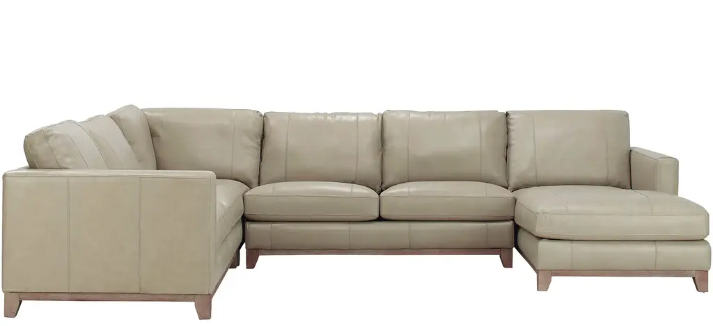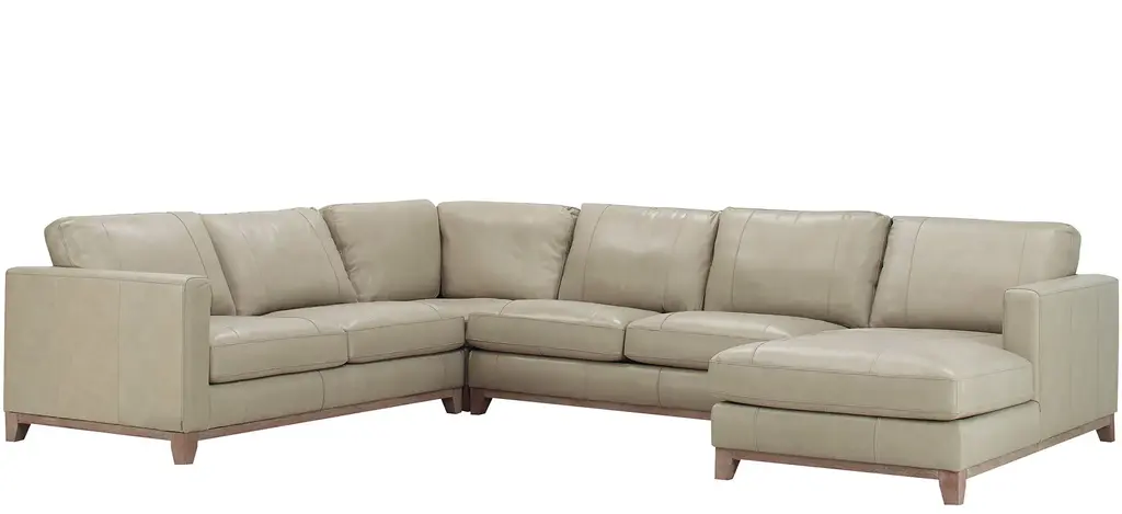 For the best in style and comfort, look no further than the Ryland 4-pc. sectional. Top-grain beige leather on the cushions and arms are smooth and soft, and are also versatile enough to match any color scheme you choose.