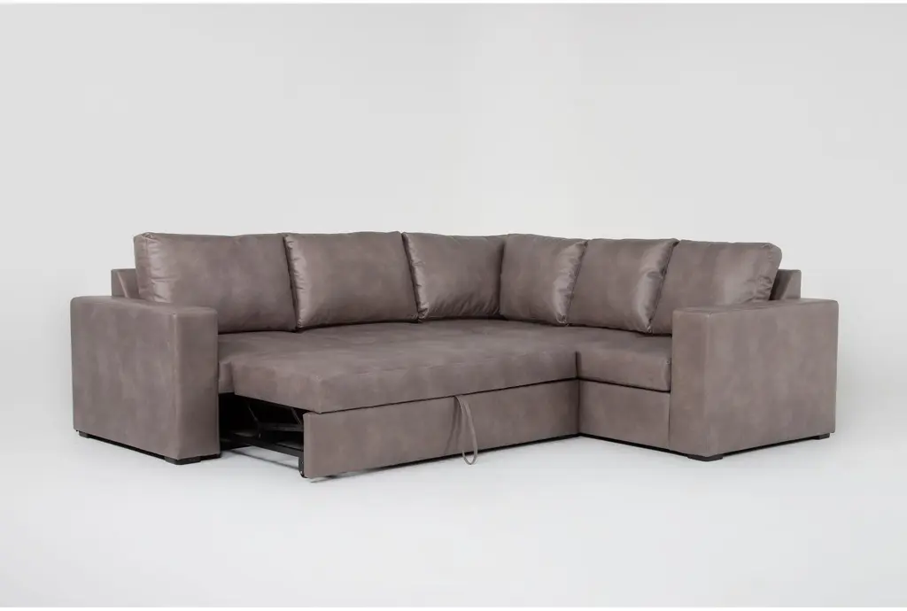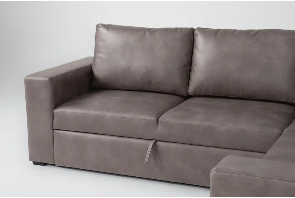 Sebastian Taupe Brown Faux Leather 109" 2 Piece Sectional With Left Arm Facing Convertible Loveseat | Fabric | Sleeper