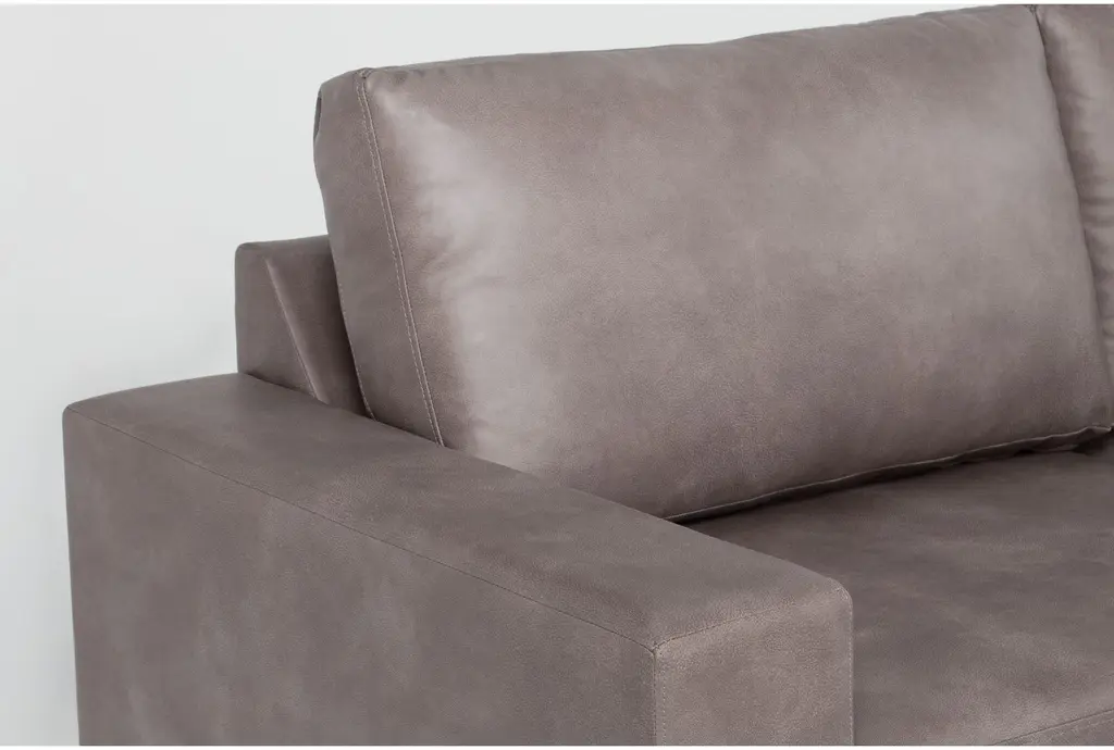 Introducing the Sebastian Taupe Brown Faux Leather 109" 2 Piece Sectional with Left Arm Facing Convertible Loveseat. This modern sectional is designed to provide maximum comfort and functionality in your living room. Its taupe color and faux leather material give it a sleek and contemporary look, while the convertible loveseat adds versatility.