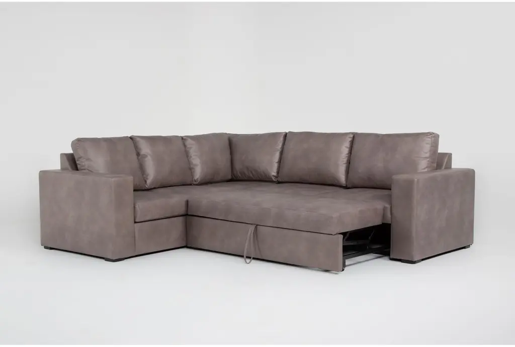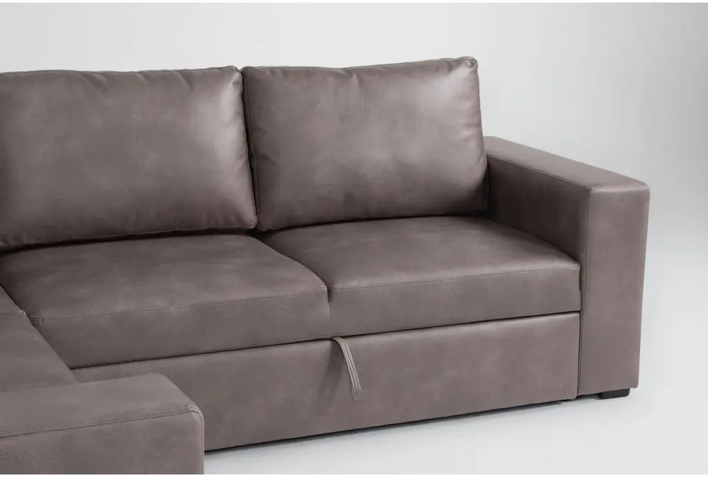 Sebastian Taupe Brown Faux Leather 109" 2 Piece Sectional With Right Arm Facing Convertible Loveseat | Fabric | Sleeper