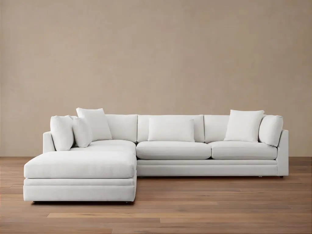 Designed to evoke the serenity of a West Coast beach house, the Shore sectional by Nate Berkus and Jeremiah Brent is a relaxed, modern solution for any living room. Luxuriously deep, the seat cushions feature supportive foam cores encased in cloud-like down alternative fiber-filled bags for a plush experience. An outer channeled casing allows the material to move, therefore creating a loose-fitting, laidback look. A sea of configuration options allows you to build the perfect seating arrangement to complement how you and your family live. Through our Special Order program, you can customize the fabric at no extra cost.