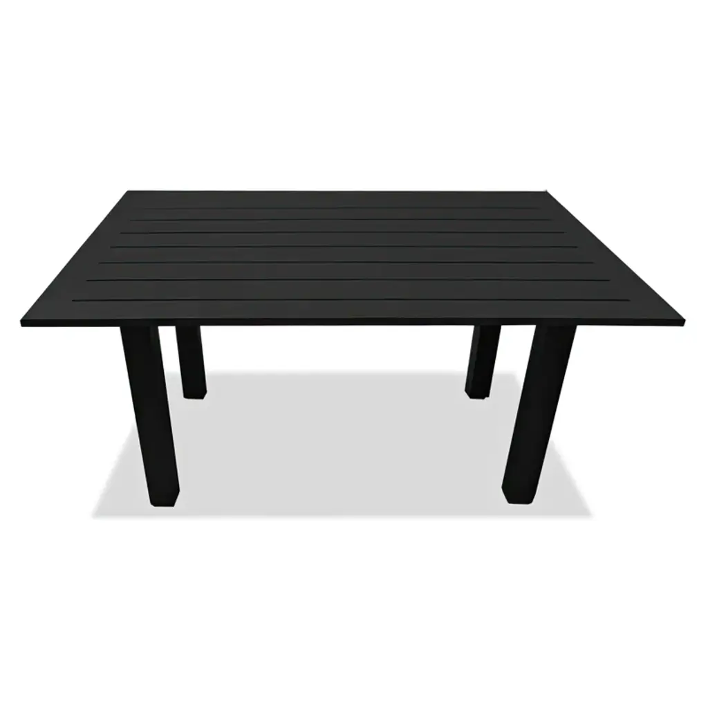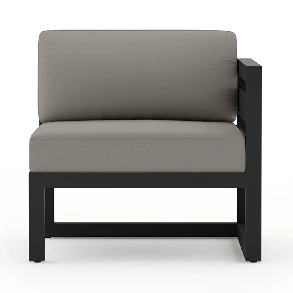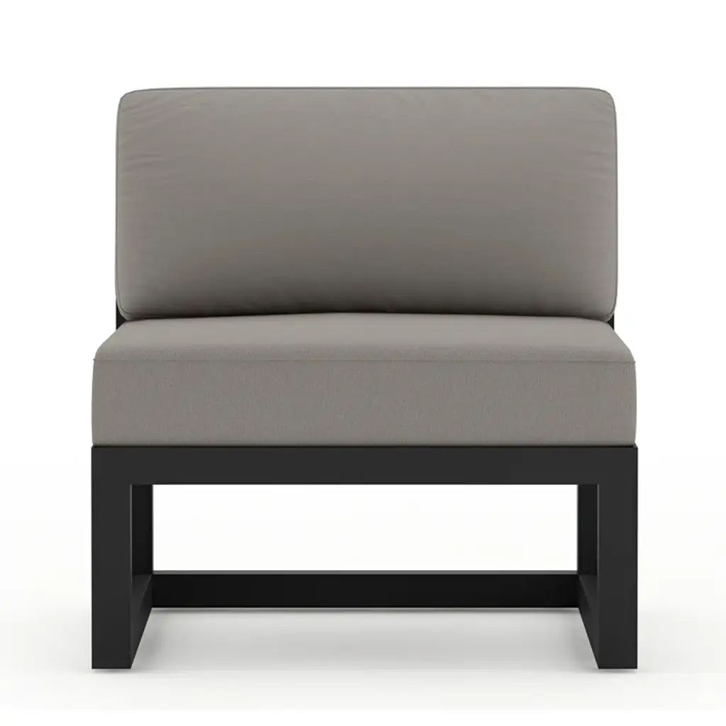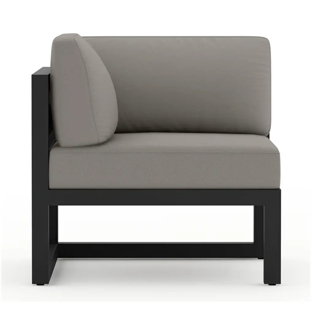 With its thick cushions + bold lines, this outdoor seating group makes alfresco lounging as stylish as it is comfortable. Built from powder-coated aluminum, it includes a chair + sectional with cushions wrapped in washable Sunbrella covers, plus a breezy slatted coffee table.