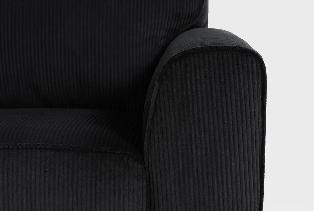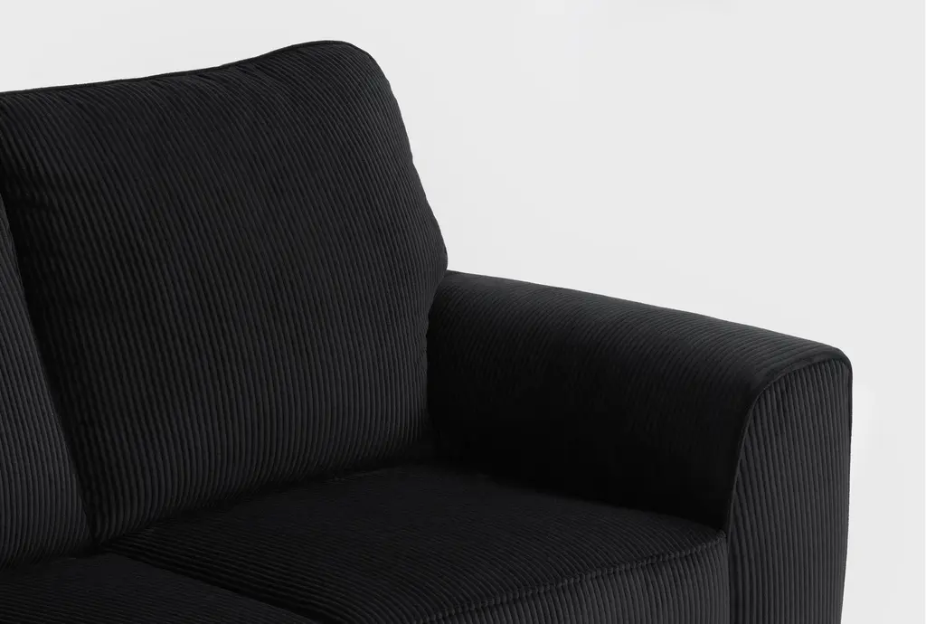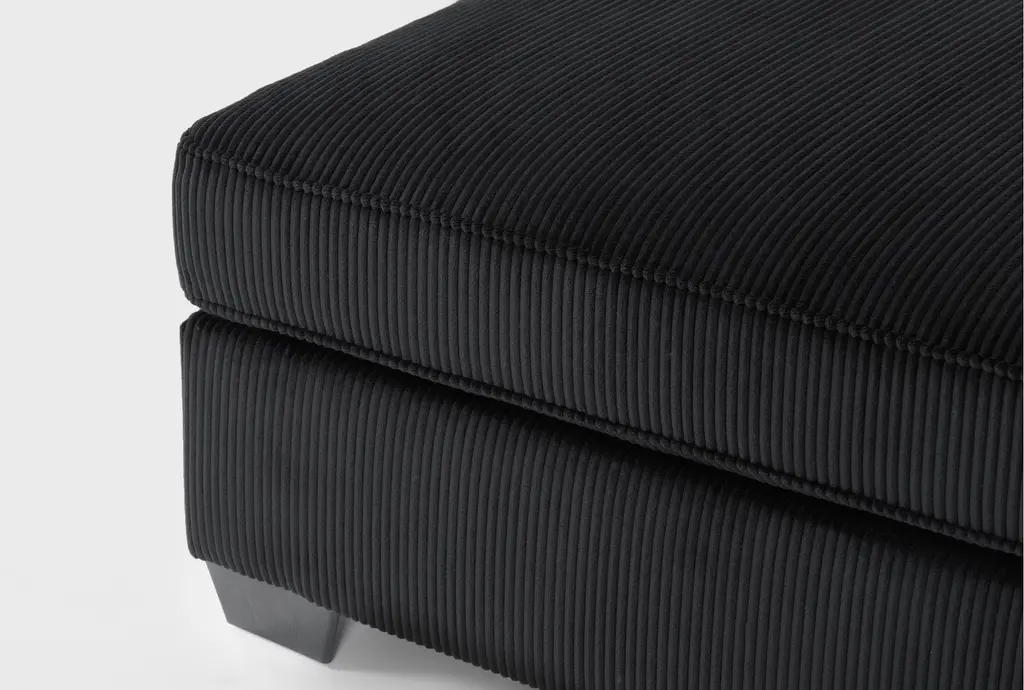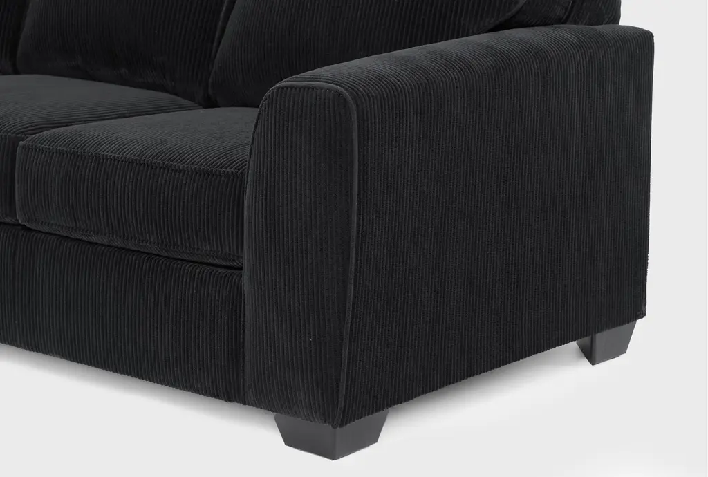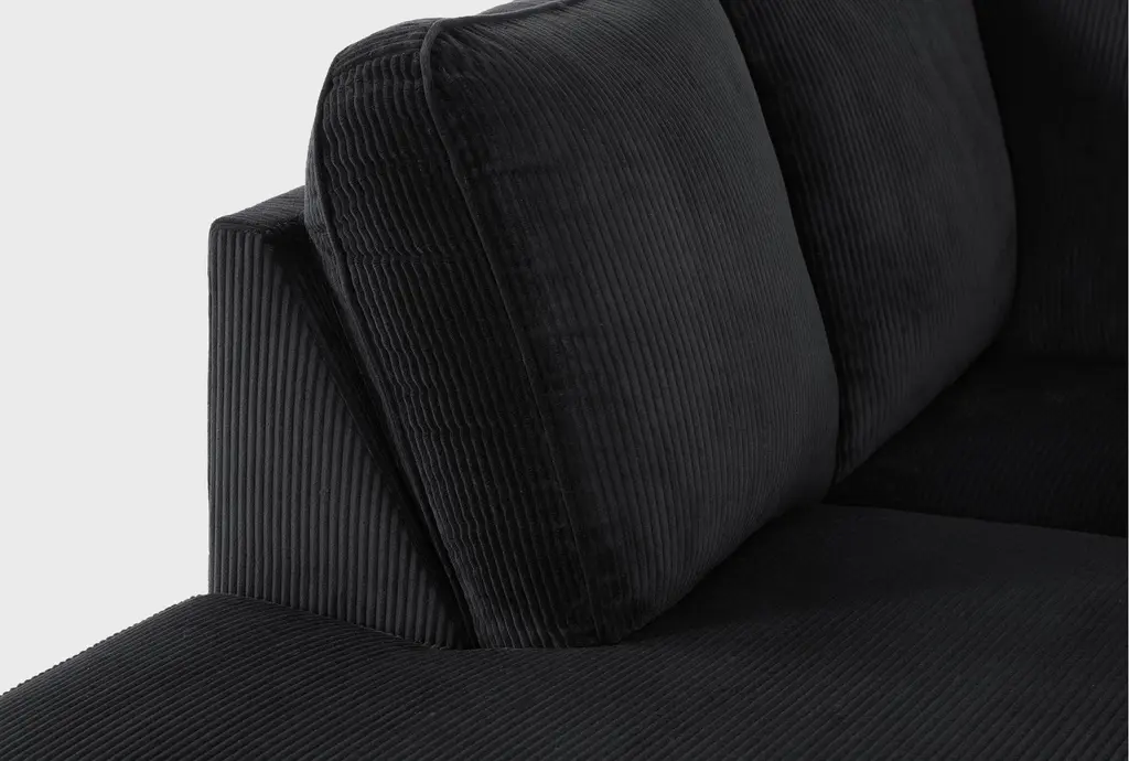 The Sofie Black Corduroy 117" 2 Piece Sectional With Left Arm Facing Corner Chaise & Ottoman brings comfort and style to your living room. Designed in a casual style, this sectional is the perfect blend of functionality and modern design. The black polyester fabric ensures durability and a medium comfort level.