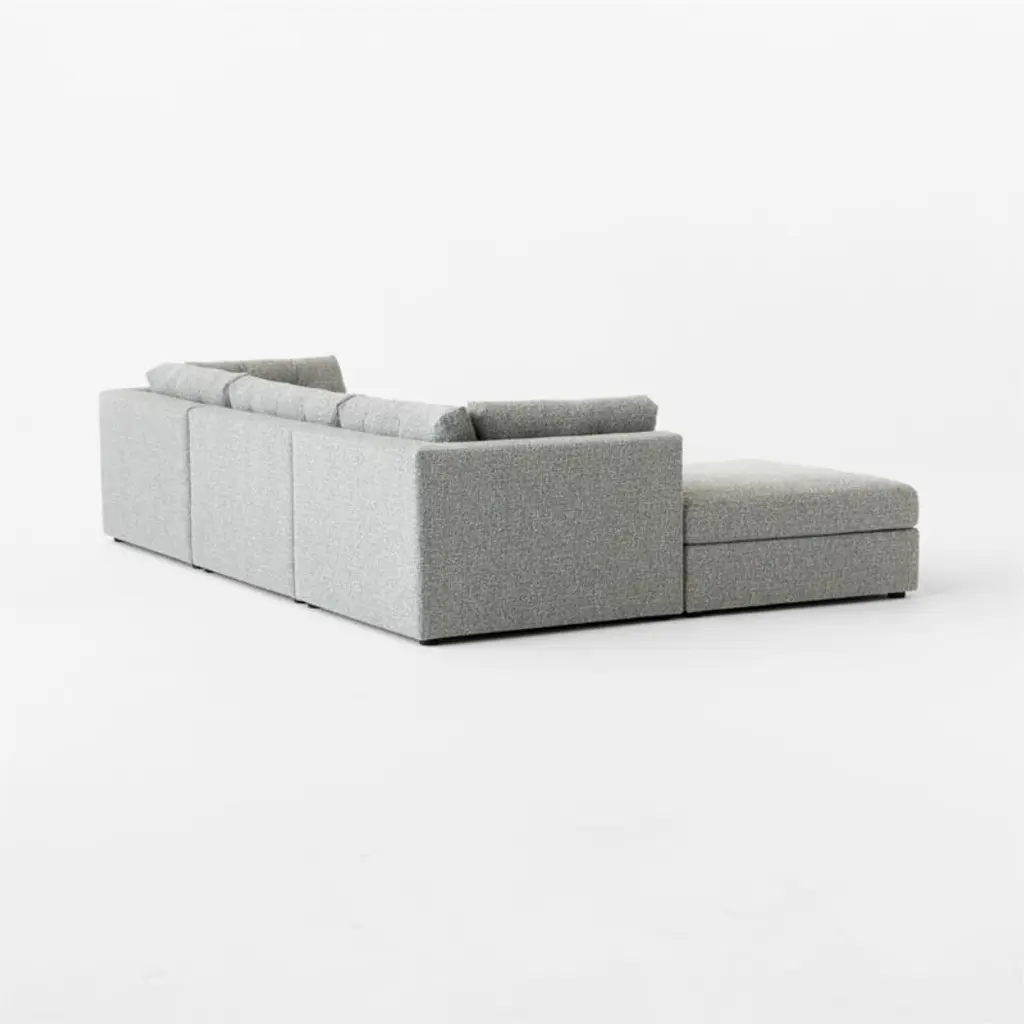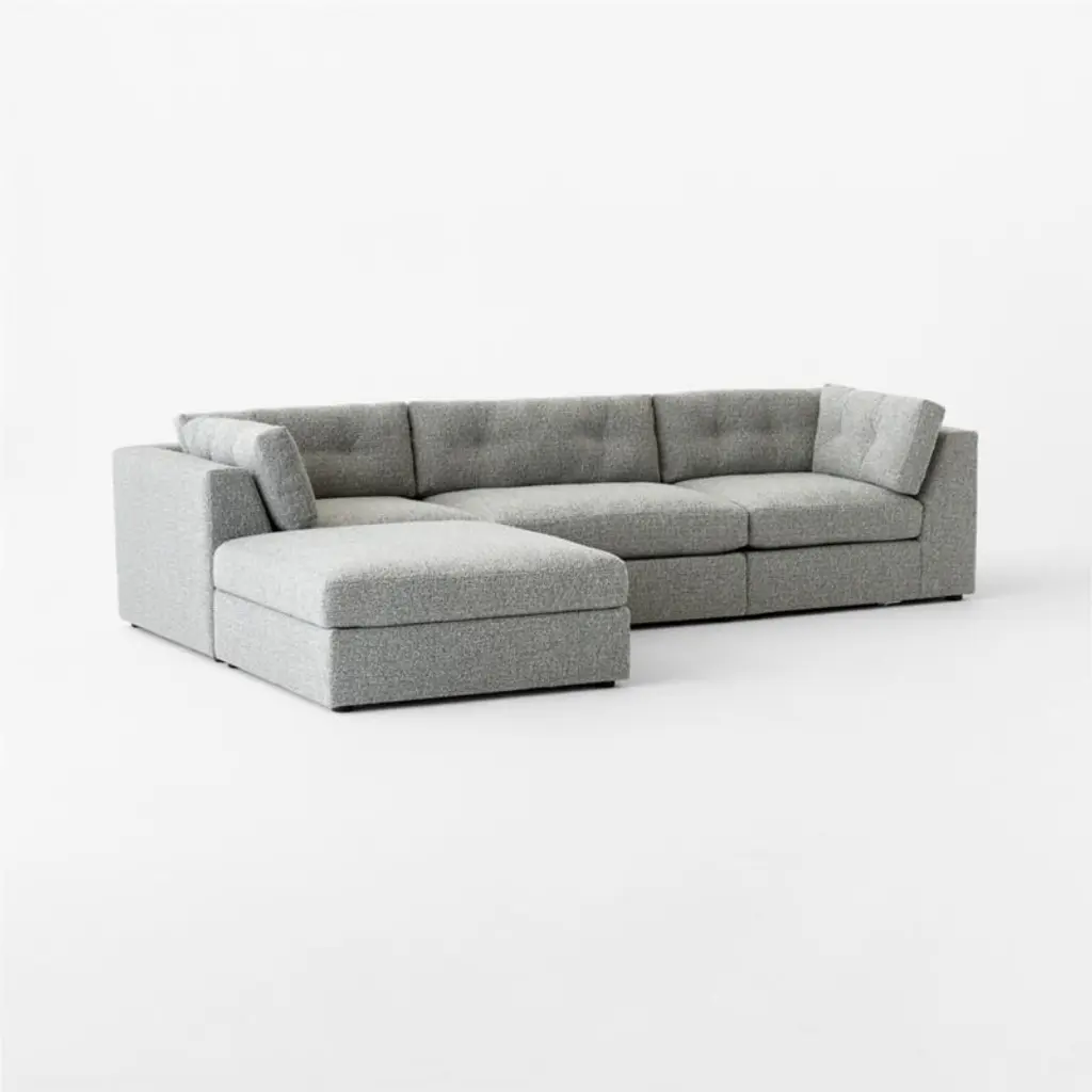Sectional by VUUE is a modern take on a classic tufted sofa. Constructed for comfort, foam-core seat cushions are wrapped in a blend of feathers and down to create a supreme environment for lounging. Considered details such as solution-dyed performance boucle upholstery and blind tufting on back cushions lend the piece a finely tailored sensibility. CB2 exclusive.