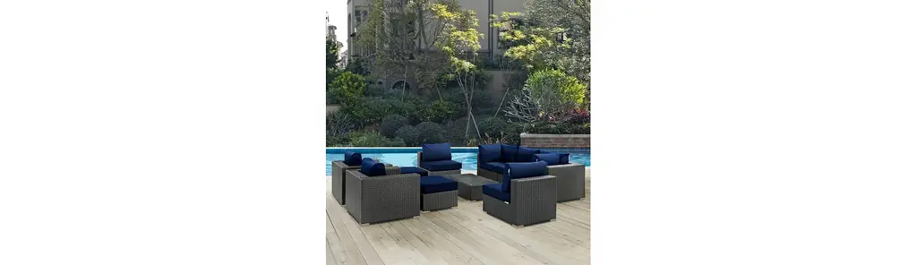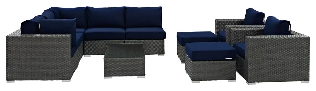 Sojourn 10-Piece Outdoor Wicker Rattan Sunbrella Sectional Set, Canvas Navy