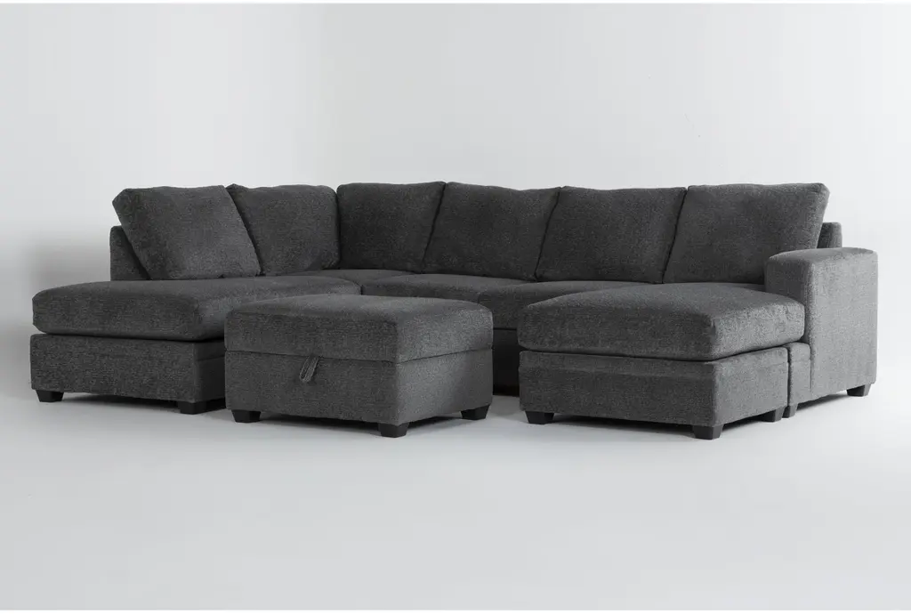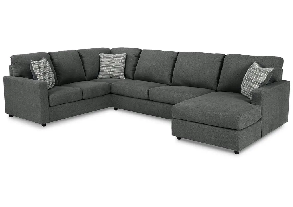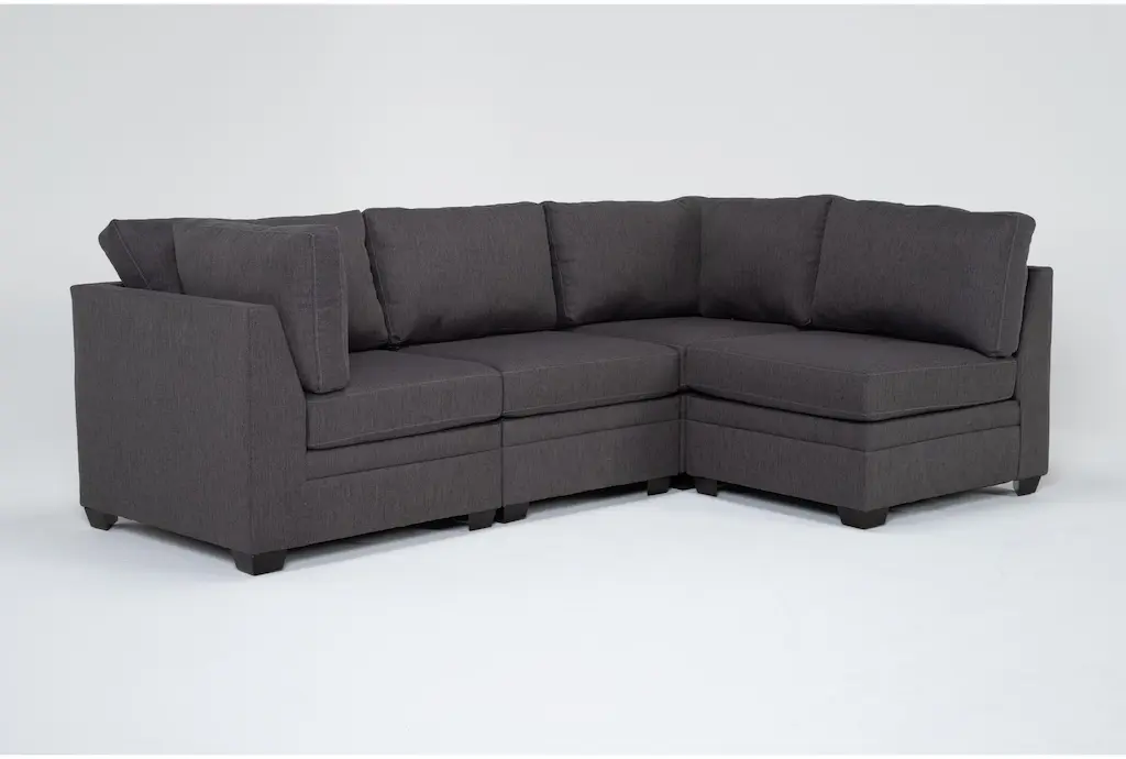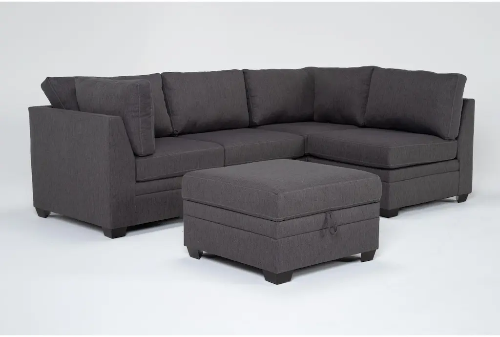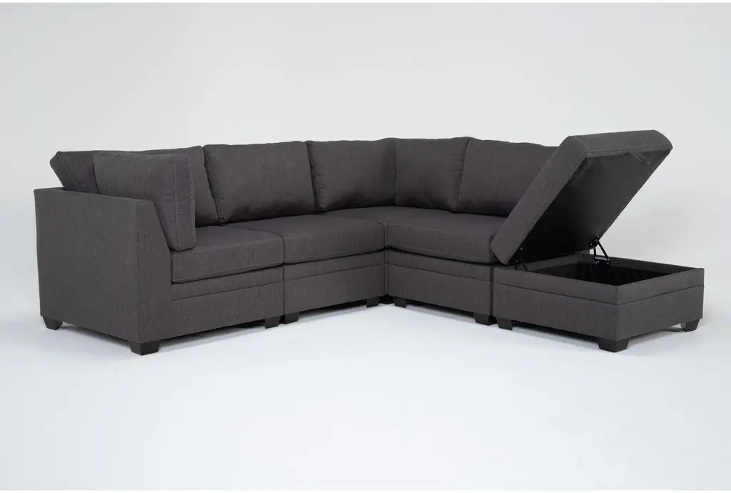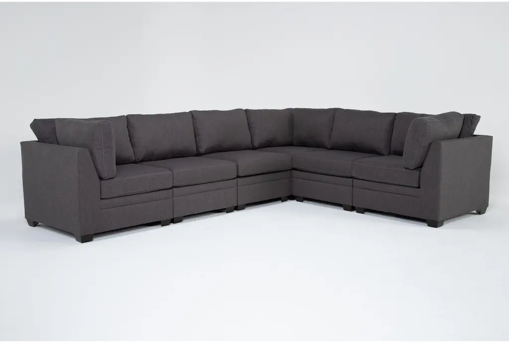 The Solimar Graphite Grey Fabric 5 Piece Modular L-Shaped Sectional is the perfect addition to your living room. With its modern design, this sectional offers both style and comfort, making it ideal for family gatherings or relaxing moments. The reversible orientation and modular configuration allow for versatile arrangements to fit any space.