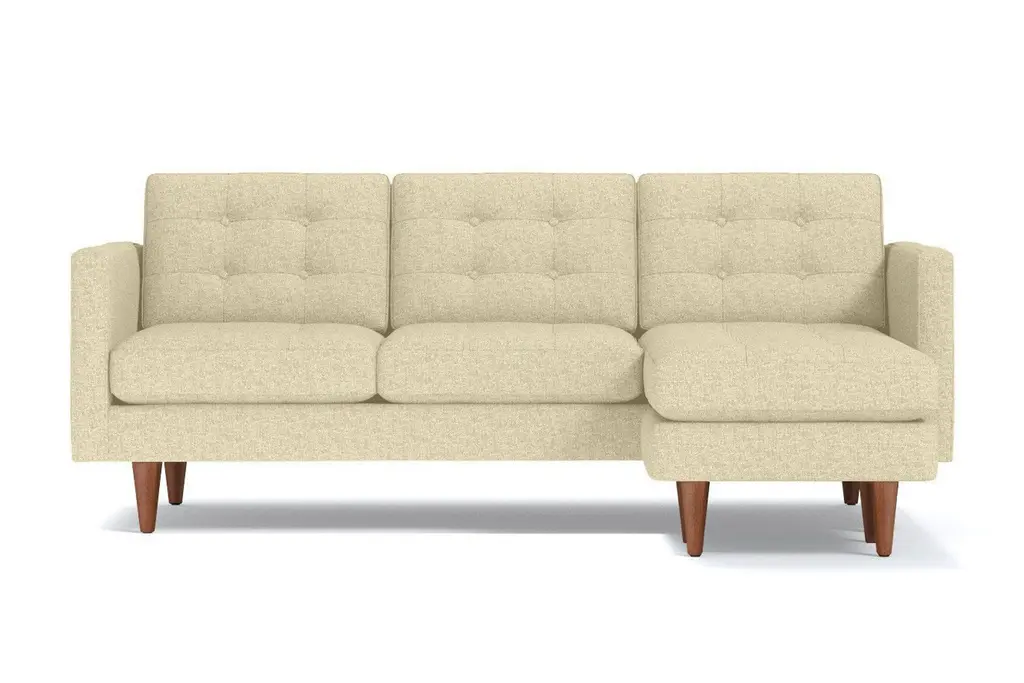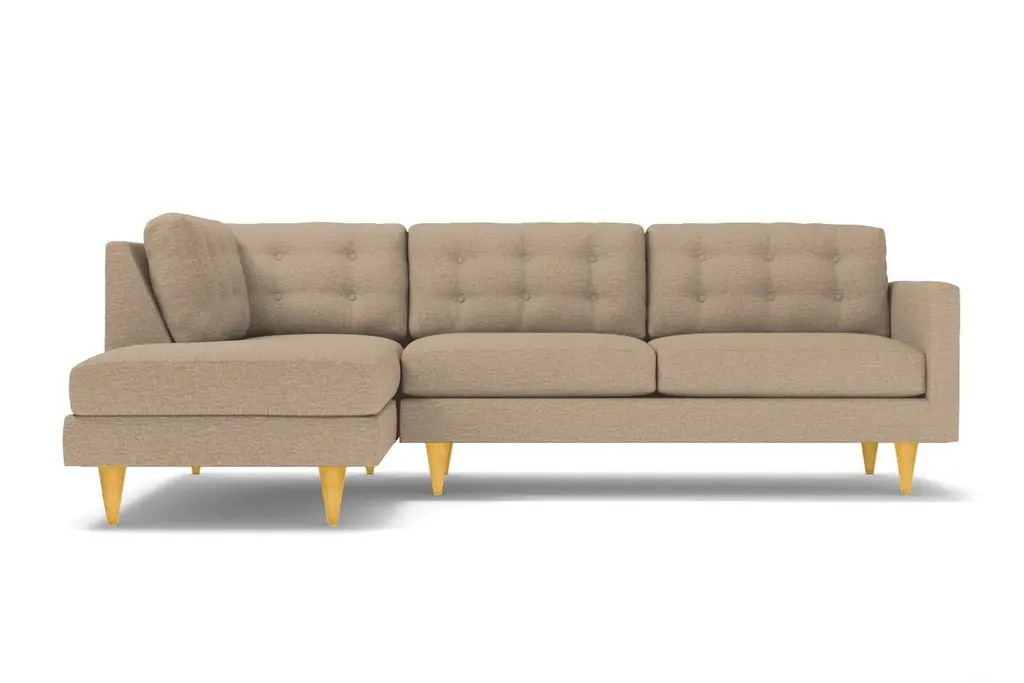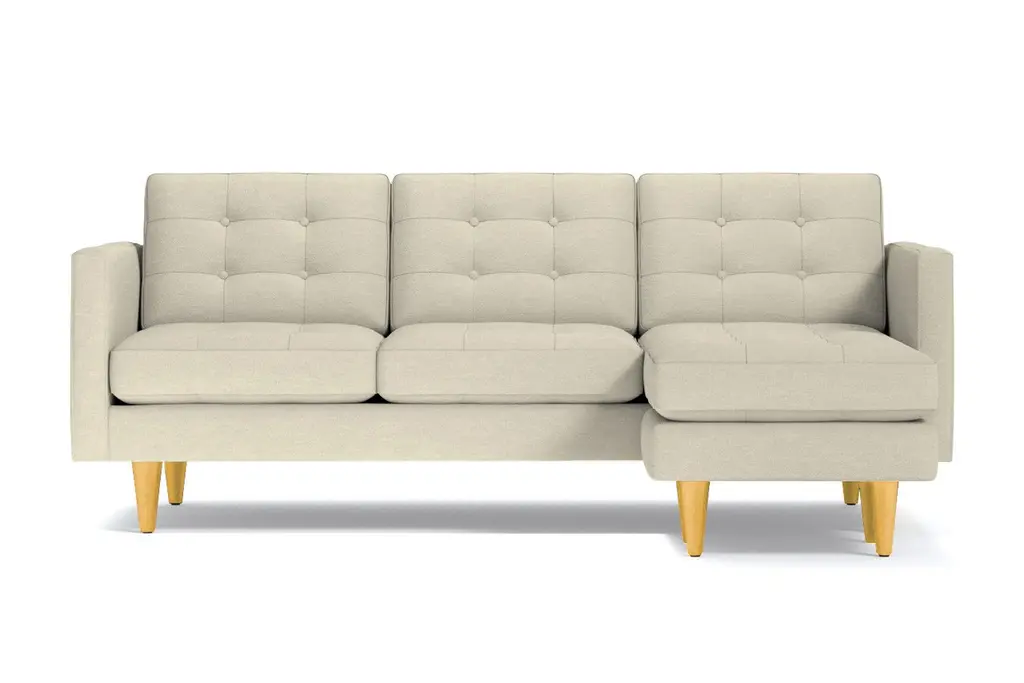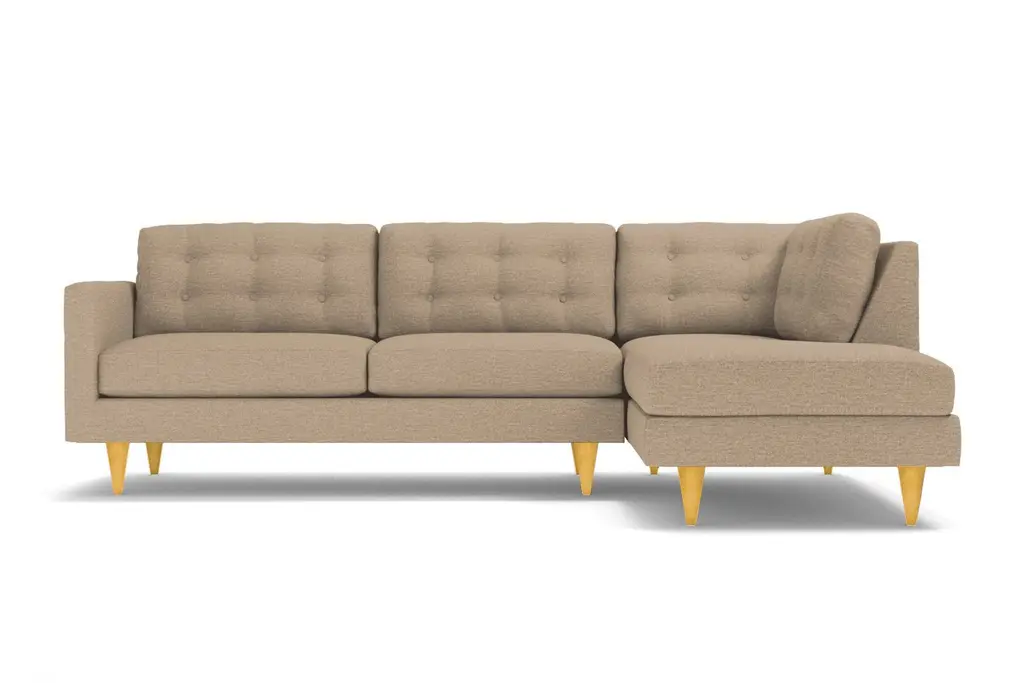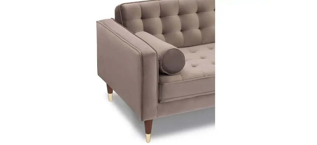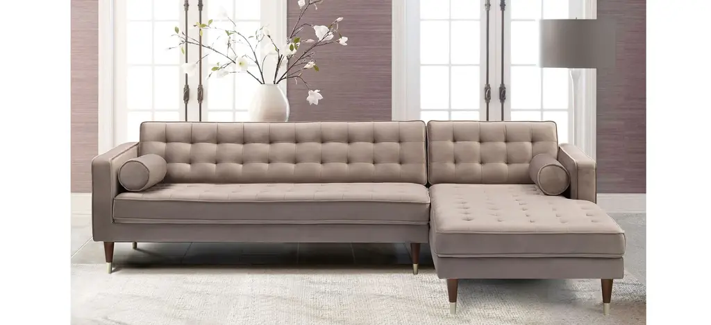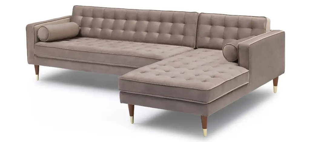 The Somerset Sectional Sofa 2-pc. adds a touch of luxury to any home. Designed for elegant, comfortable living, this contemporary tufted sectional is a classic. Its generous proportions are upholstered in sumptuous velvet with luxurious tufted detail. The gold-finished caps on its tapered wooden legs add fun retro flair.