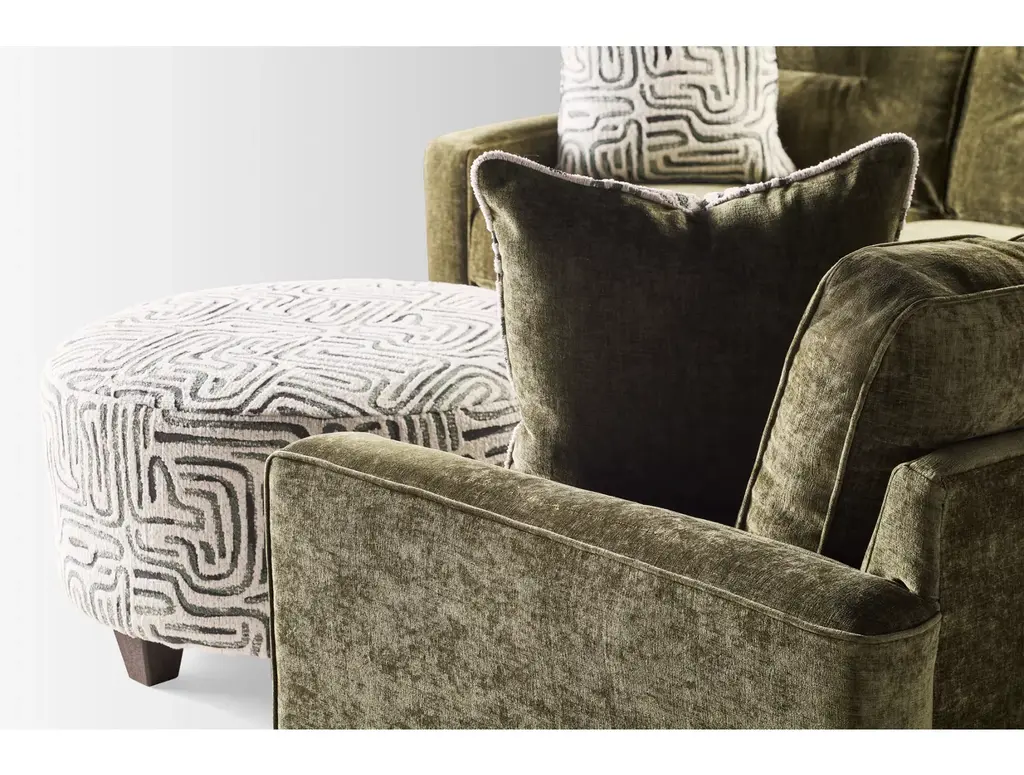 Transform your living space with the Peak Living South Main 2 Piece Sectional with Round Ottoman. This stylish sectional features soft upholstery and tufted back cushions for ultimate comfort. The track armrests and tapered square legs add a modern touch, while the included round ottoman enhances relaxation. Enjoy additional comfort with three coordinating toss pillows.