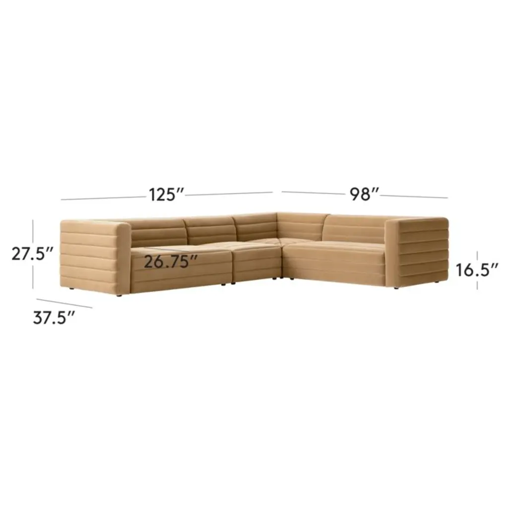 Strato 4-piece L-shaped Camel Brown Velvet Sectional Sofa