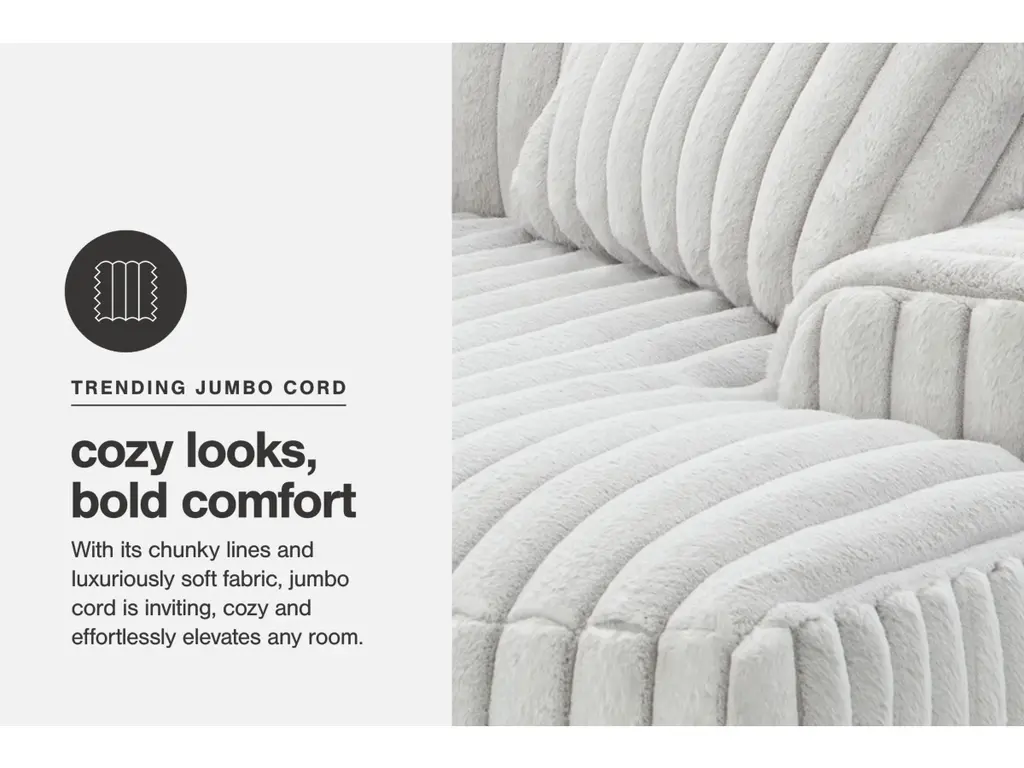 Don’t want to sacrifice standout style for majorly cozy seating? The Stupendous sectional with chaise pairs bold character with sink-in comfort. Its retro-cool jumbo cord over feather-blend cushions creates a luxuriously soft lounging experience. With this sectional, you can balance everyday relaxation and your unique eye for design.