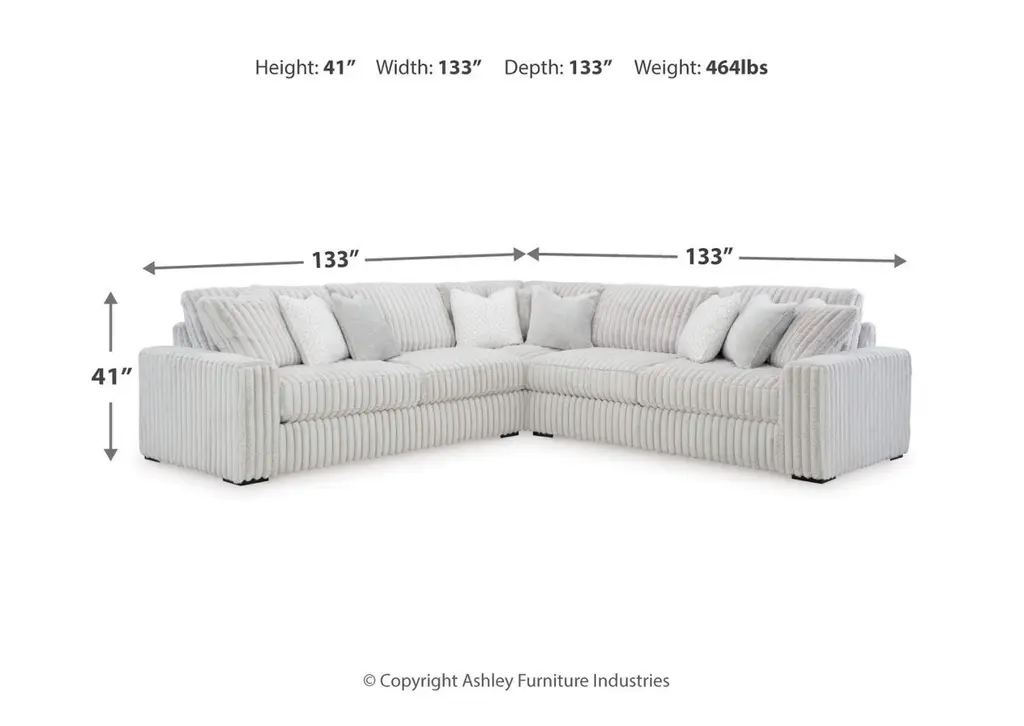 Don’t want to sacrifice standout style for majorly cozy seating? The Stupendous sectional pairs bold character with sink-in comfort. Its retro-cool jumbo cord over feather-blend cushions creates a luxuriously soft lounging experience. With this sectional, you can balance everyday relaxation and your unique eye for design. Weight 482.000 lbs. (216.9kgs.)