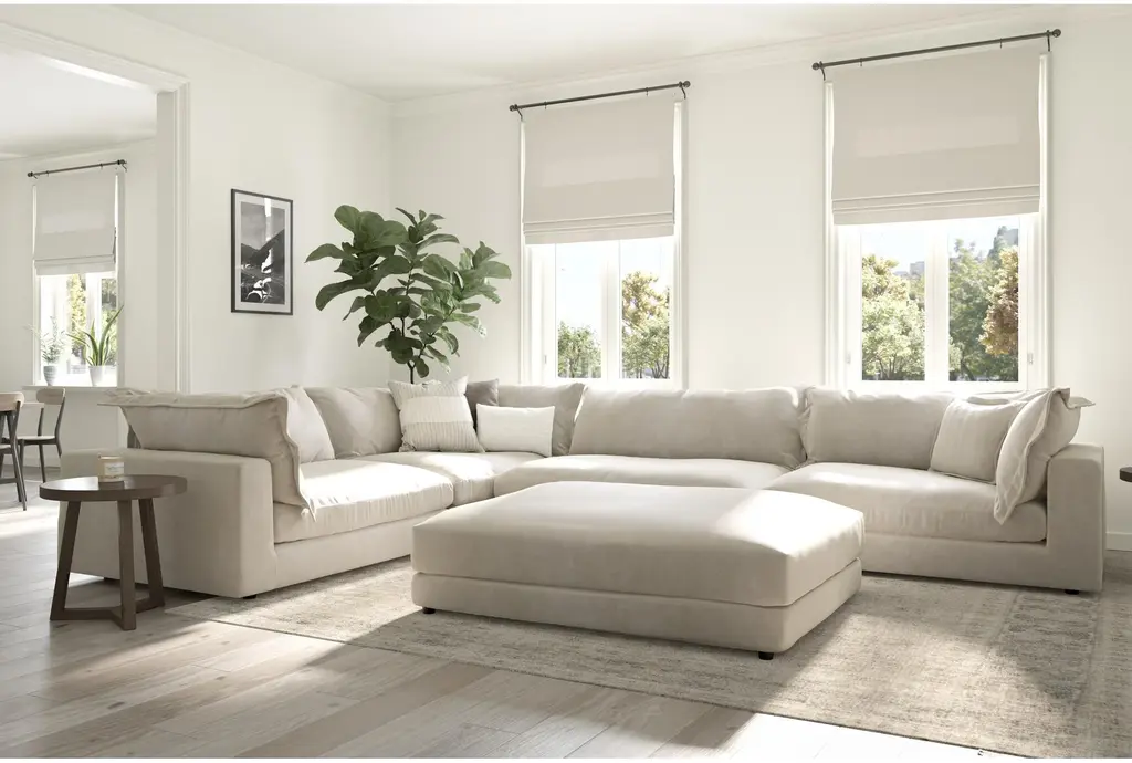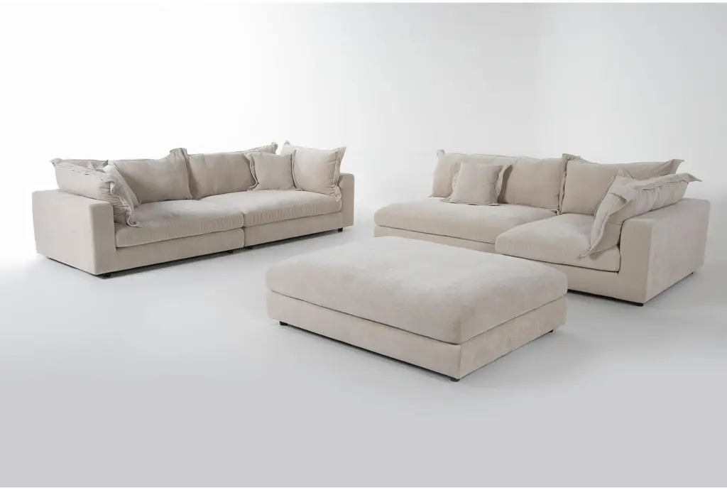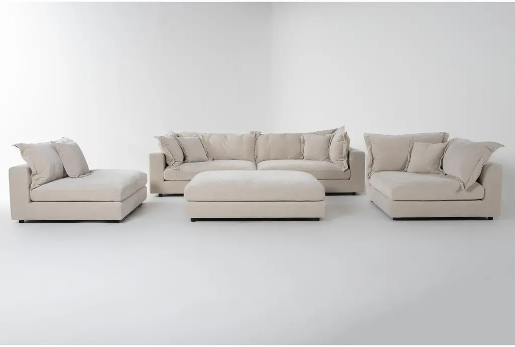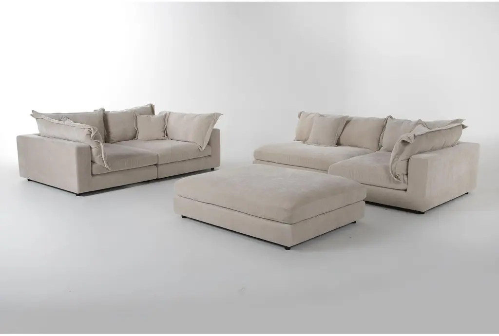 Supreme Lounger Beige Cobblestone Fabric 4 Piece Oversized Modular U-Shaped Sectional With Right Arm Facing Chaise & Ottoman Set