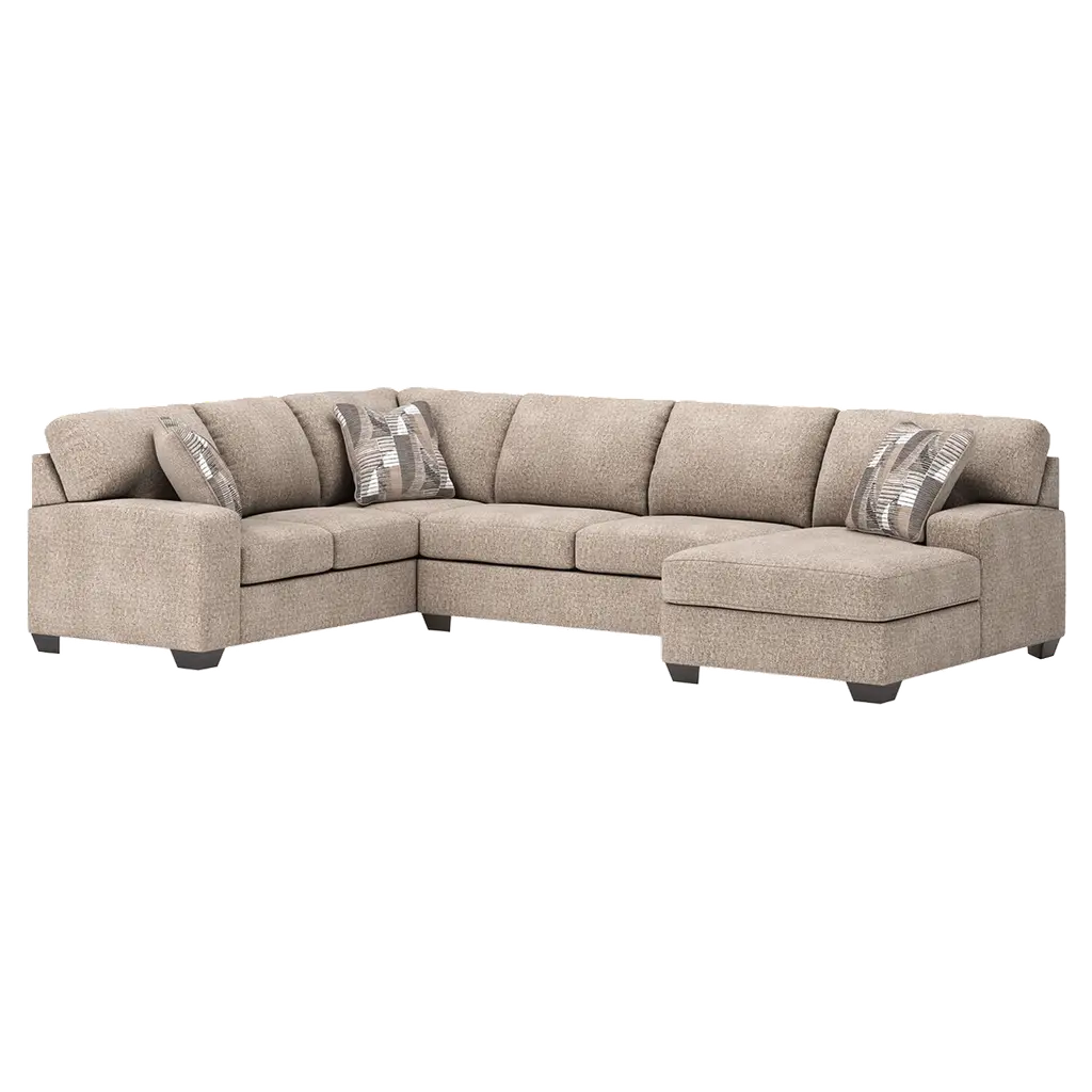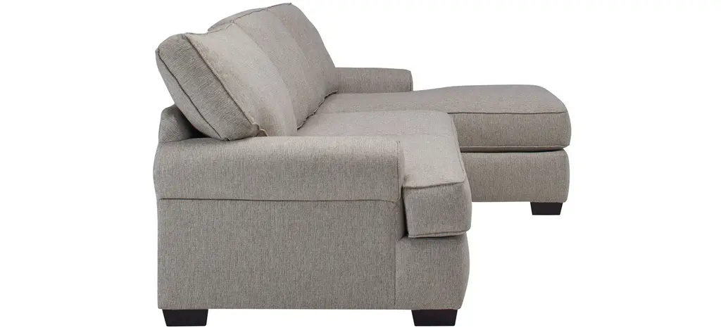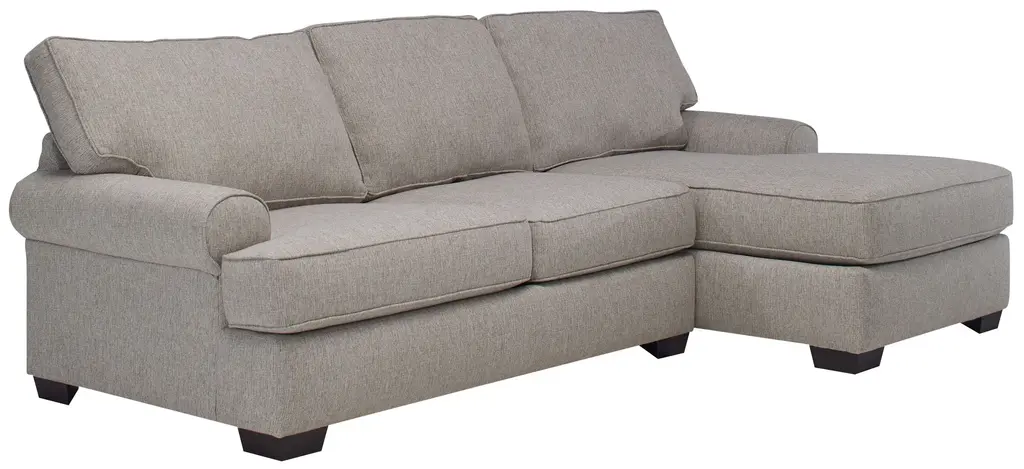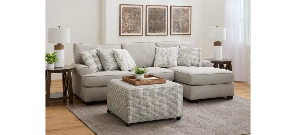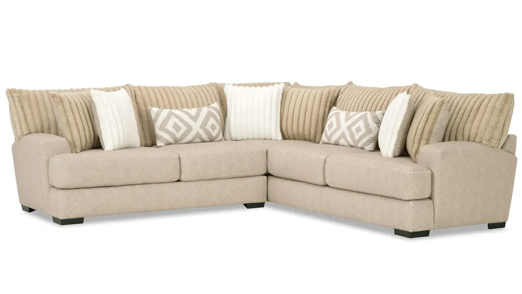 There is so much to love about the Suzanne sectional! With the casual elegance of a transitional design and featuring soft, neutral fabric, it's the perfect foundation for creating a warm and inviting atmosphere in your living room. The T cushions and loose back cushions are boxed and reversible, and there are a variety of configurations you can choose from to fit your space and needs. Accent pillows in complementary patterns are the crowning touch.