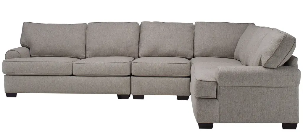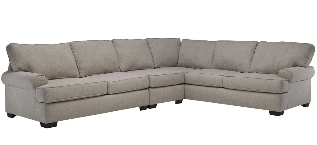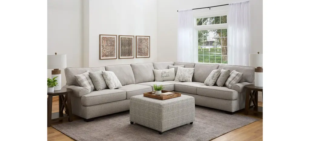 There is so much to love about the Suzanne sectional! With the casual elegance of a transitional design and featuring soft, neutral fabric, it's the perfect foundation for creating a warm and inviting atmosphere in your living room. The T cushions and loose back cushions are boxed and reversible, and there are a variety of configurations you can choose from to fit your space and needs. Accent pillows in complementary patterns are the crowning touch.