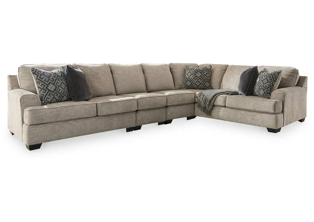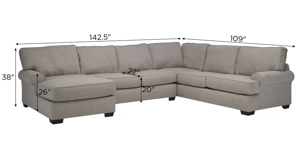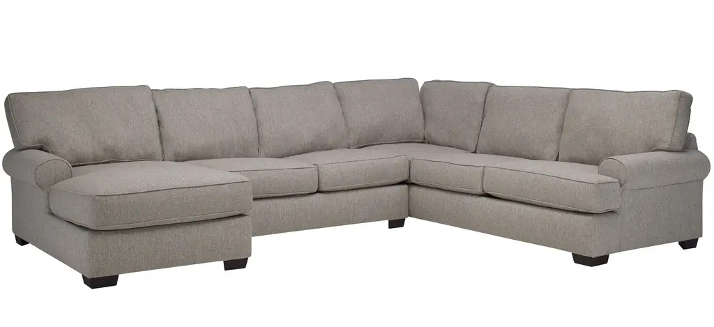 There is so much to love about the Suzanne sectional! With the casual elegance of a transitional design and featuring soft, neutral fabric, it's the perfect foundation for creating a warm and inviting atmosphere in your living room. The T cushions and loose back cushions are boxed and reversible, and there are a variety of configurations you can choose from to fit your space and needs. Accent pillows in complementary patterns are the crowning touch.