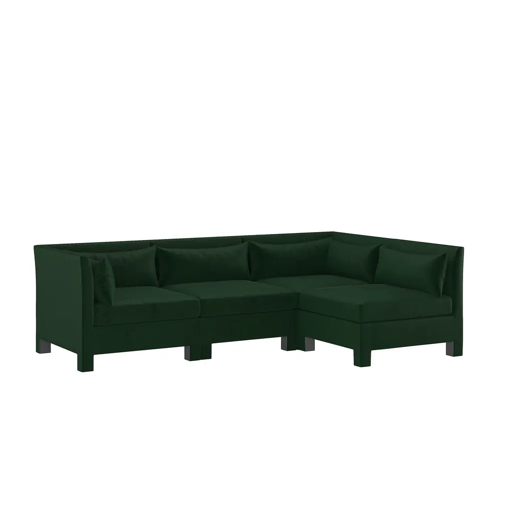 Sylvan 4 Piece Sectional In Emerald Luxe Velvet
