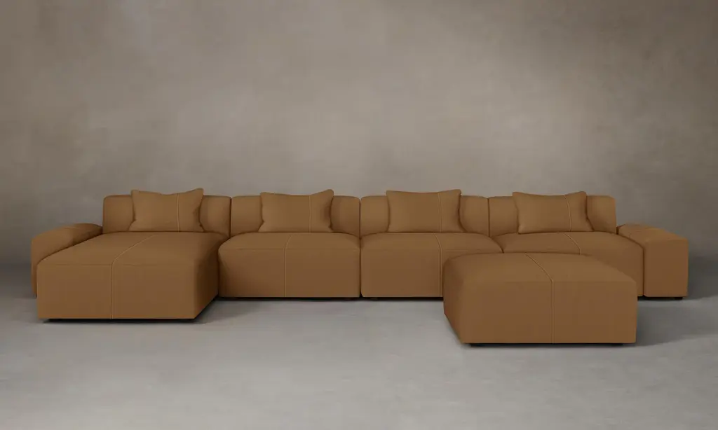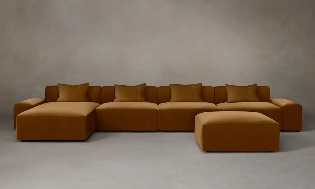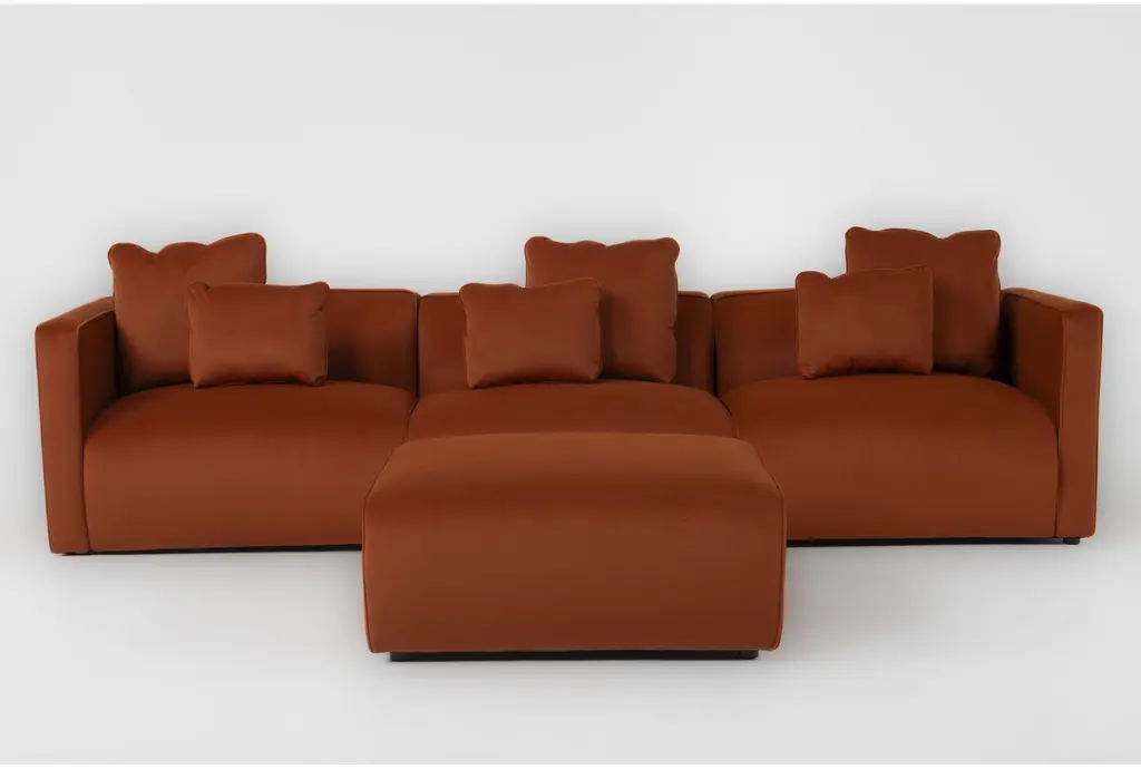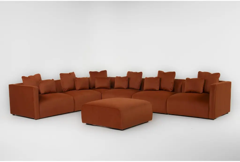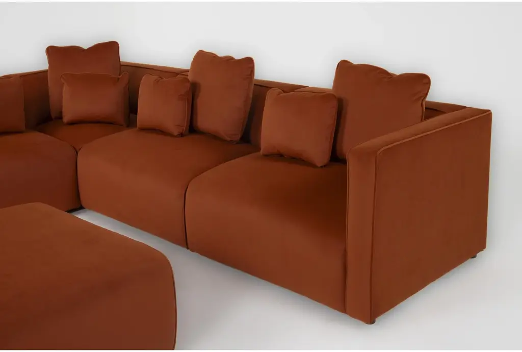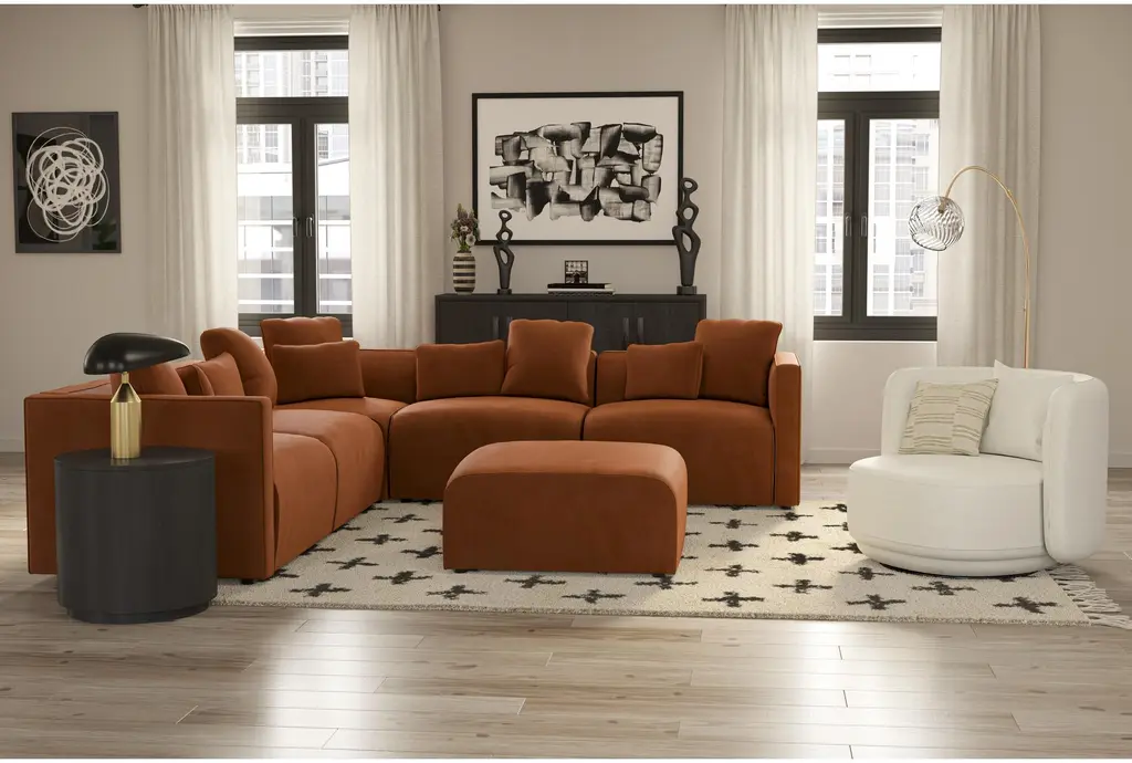 Tao Burnt Sienna Velvet 115" 5 Piece Modular Sectional With Ottoman