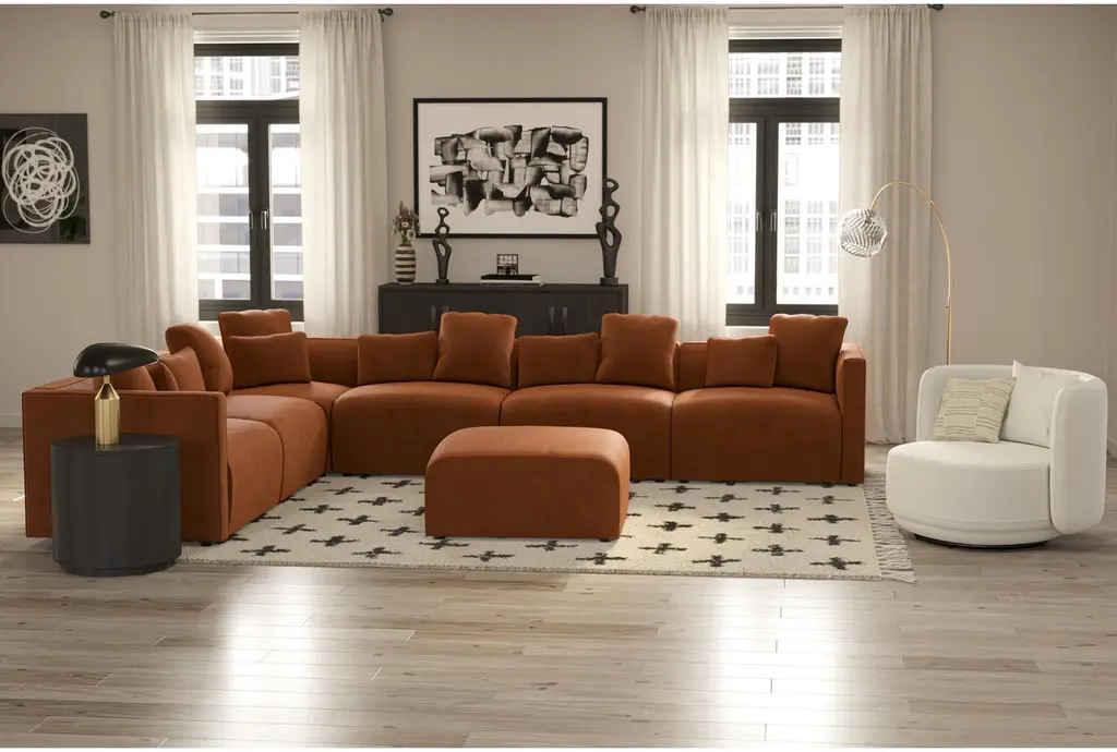 Tao Burnt Sienna Velvet 152" 6 Piece Modular Sectional With Ottoman