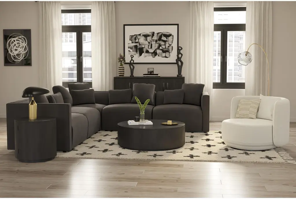 Tao Dark Grey Velvet 115" 5 Piece Modular Sectional