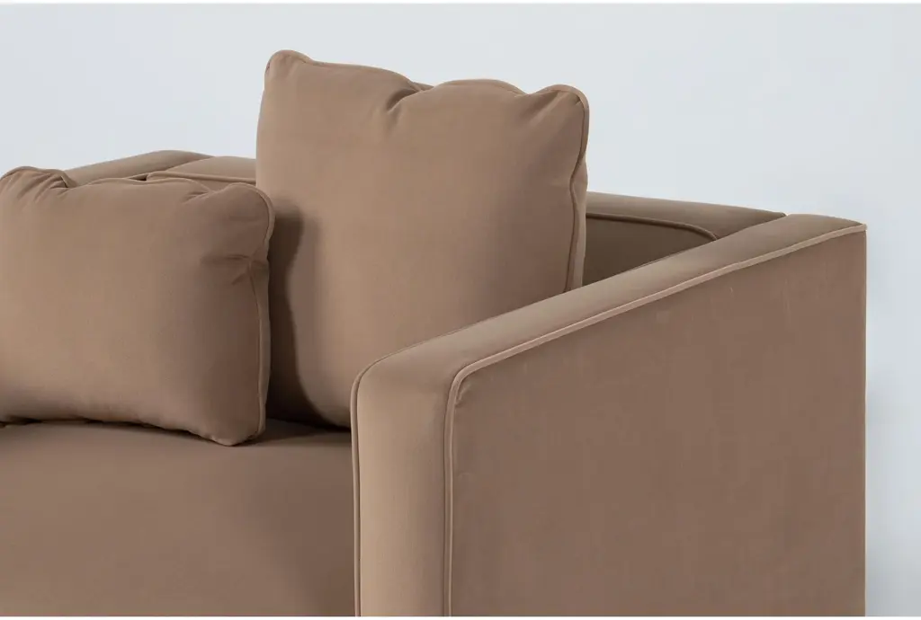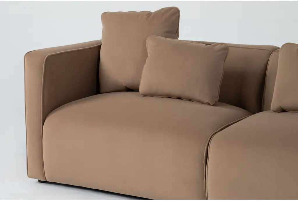 The Tao Khaki Beige Velvet 115" 5 Piece Modular Sectional With Ottoman is a perfect addition to any living room. Its modern design, combined with the luxurious feel of velvet, offers both style and comfort. The symmetrical layout and versatile modular configuration allow you to tailor it to fit your space effortlessly.