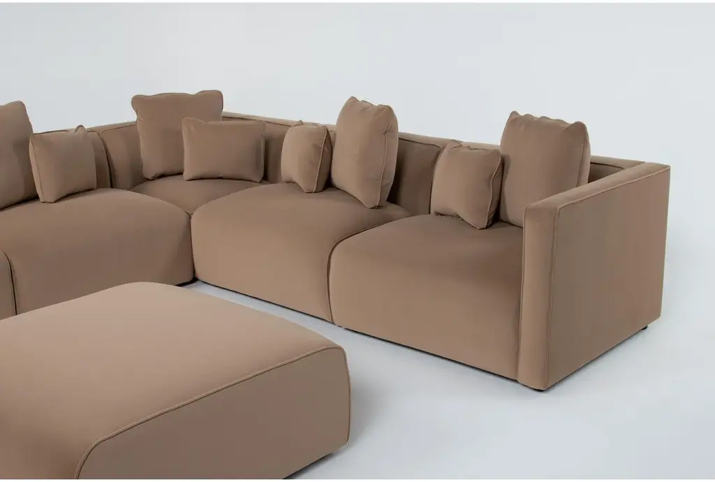 Tao Khaki Beige Velvet 115" 5 Piece Modular Sectional With Ottoman