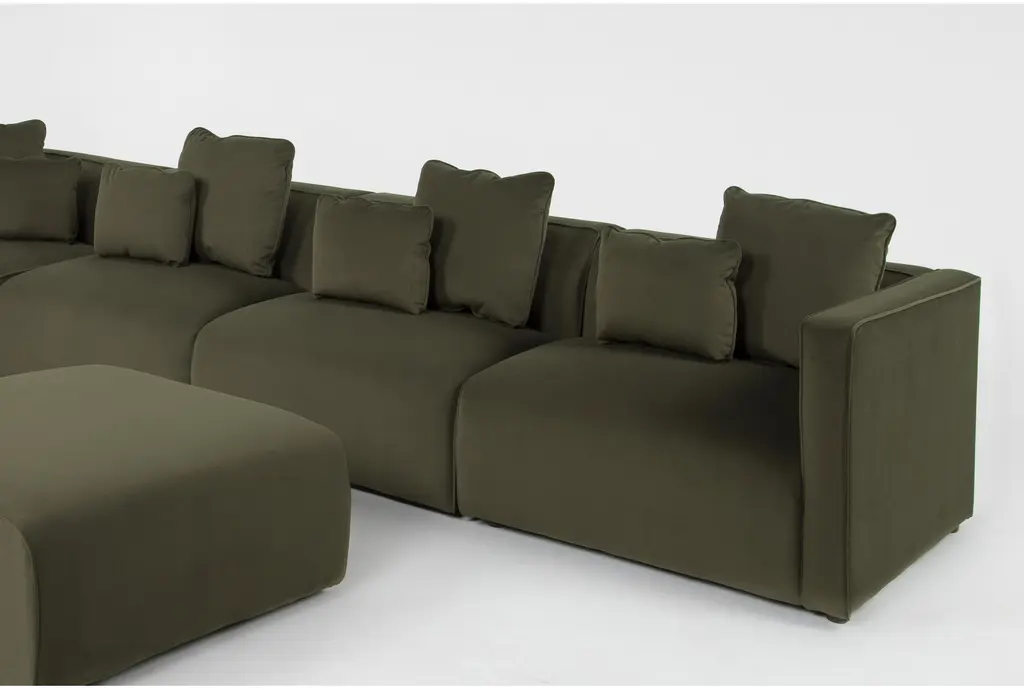 Tao Olive Green Velvet 152" 6 Piece Modular Sectional With Ottoman
