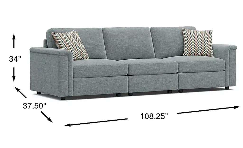The world quiets... life's rhythms slow... serenity washes over you as you gently relax into the Tempo Modular collection, its effortless luxury flowing from the unity of form and function. Transitional style defines this sectional, its comfortably understated seats upholstered in blue chenille and highlighted with unique inverted waterfall track arms. And, with easy-to-use connectors, this modular seating solution can be rearranged to fit your changing needs and tastes. Includes LAF chair, armless chair and RAF chair. Upholstery: 100% Polyester.