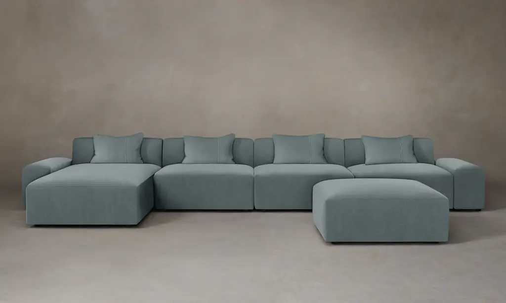 The Breuer Modular Sectional - Heritage Belgian Linen Lake - Chaise Sectional / 100" Chaise With Low Armrests