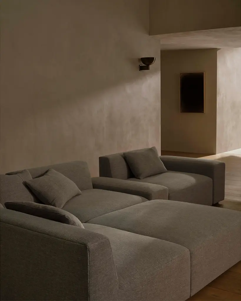 The Breuer Modular Sectional draws inspiration from the bold and graphic shapes of brutalist design. Tightly upholstered for a sleek look, it has a low-lying seat accompanied by plush throw pillows. Handcrafted in North Carolina.