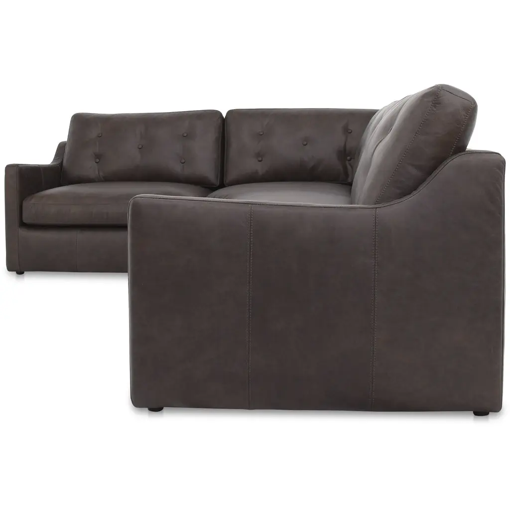 The Thurlow modular sectional collection features sophisticated sloped arms and a tufted back that lends a traditional touch, while its generous proportions and rich espresso hue elegantly balance versatile modernity. Wrapped in top-grain leather, each piece offers plush comfort through unexpected feather and fiber fillings atop high-density foam.