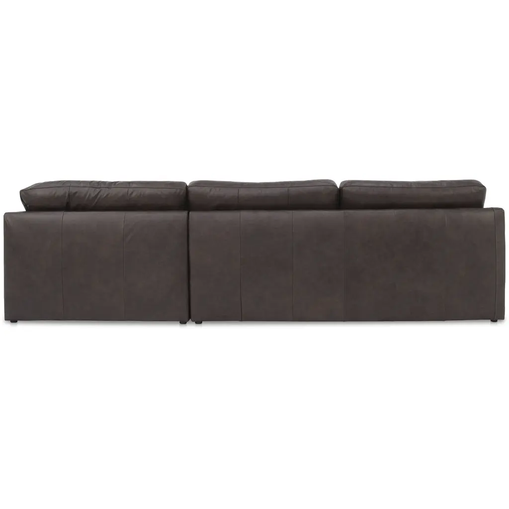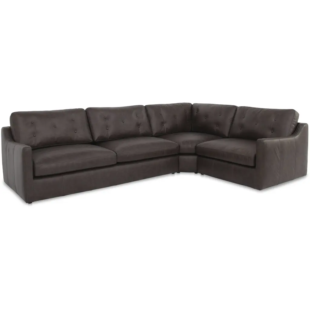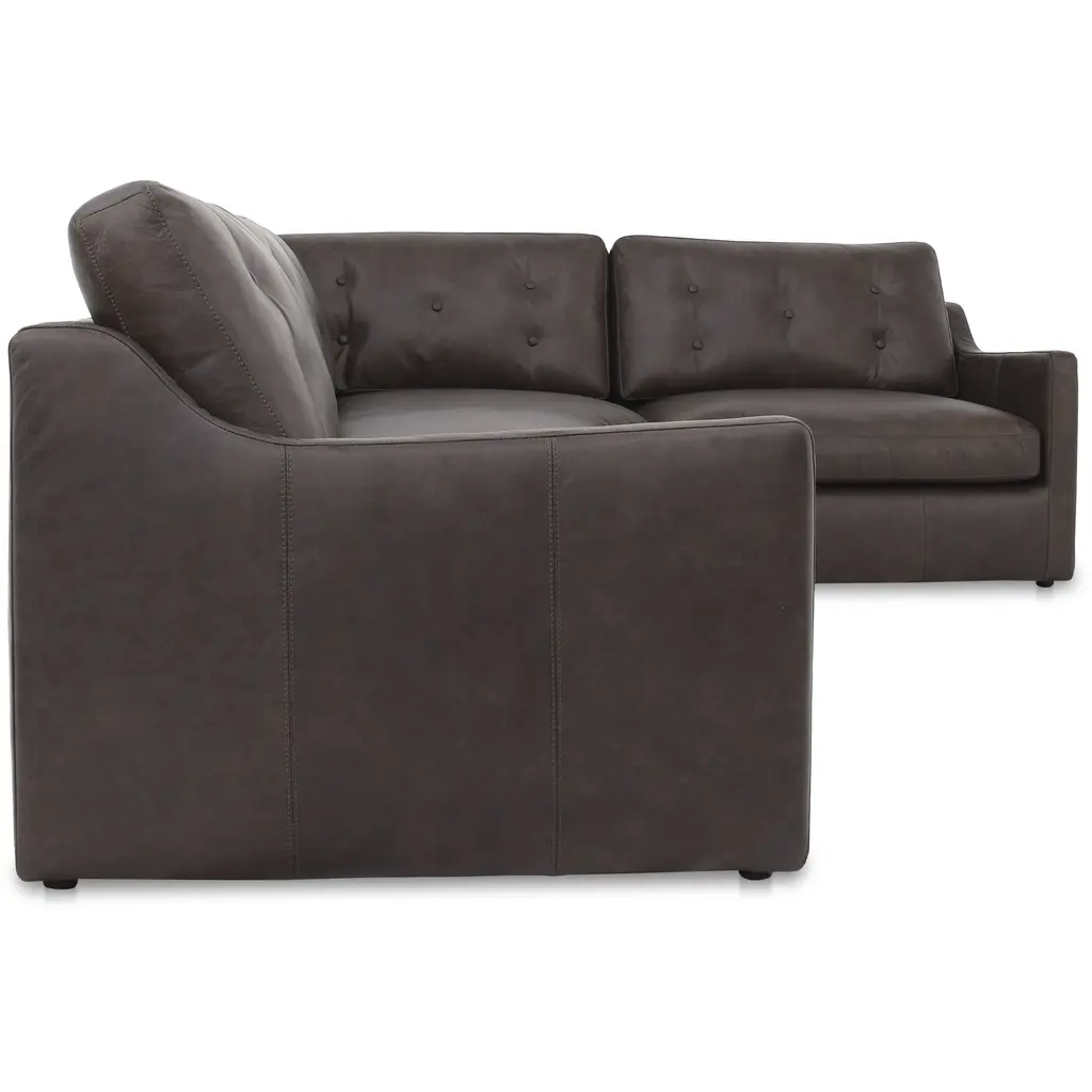 The Thurlow modular sectional collection features sophisticated sloped arms and a tufted back that lends a traditional touch, while its generous proportions and rich espresso hue elegantly balance versatile modernity. Wrapped in top-grain leather, each piece offers plush comfort through unexpected feather and fiber fillings atop high-density foam.