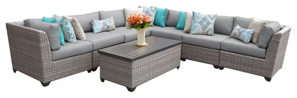 Tk Classics Florence 8-Piece Wicker Patio Sectional In Gray