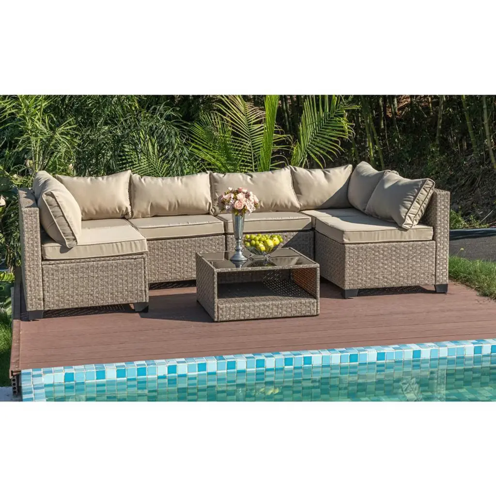 Our Florence Collection creates a warm, inviting and durable seating area that compliments its surroundings with subtle Gray and natural hues. With a combination of both flat and rounded polyethylene wicker, there’s a creation of a visible texture like no other. All while offering a fresh take on sophisticated style. Our sturdy, lightweight aluminum frames, are hidden from view in order to allow the focus to be the striking wicker design. The modular design of our furniture enables you to quickly arrange and rearrange pieces to tailor it to any space you desire.Features:Finish: GrayMaterial: Polyethylene ResinCushions - 6 inches thick for a luxurious look and feelCushion Covers - Washable and zippered for easy cleaning (air dry only)Feet Levelers - Height adjusters for uneven surfaces that won't mar your patio or deckTable Tops - Cast aluminum with a durable powder coated finishFully Assembled - Ready to use and enjoyStorage - Rectangle coffee table doubles as StorageCustom hand woven all-weather, high density, PE (polyethylene) wickerStrong rust resistant, powder coated aluminum frame for maximum durabilityCommercial grade constructionNo Sag solid wicker bottoms with extra flexible strapping providing long-lasting suspensionPerfect for outdoor use in all climatesElegant design includes angled backsIncludes seat and plush back Cushions for maximum comfortNew rust-resistant, powder coated feet which are color matched with Table TopsAll sets will come with Gray Stone wicker and Gray covers on the Cushions.OPTIONAL: Decorative throw pillows in matching or contrasting colors or print.Second set of Cushion Covers in the color of your choice.Clips not included but may be purchased separately.If you don't see a configuration that fits your needs, please contact us and we will help you build your own set!Specifications:Sofa Dimensions: (Corner) 29"H x 35"W x 35"D ; (Armless) 29"H x 28"W x 35"DCoffee Table Dimensions: (With Storage) 18"H x 48"W x 24"DProduct Weight: 271 lbs