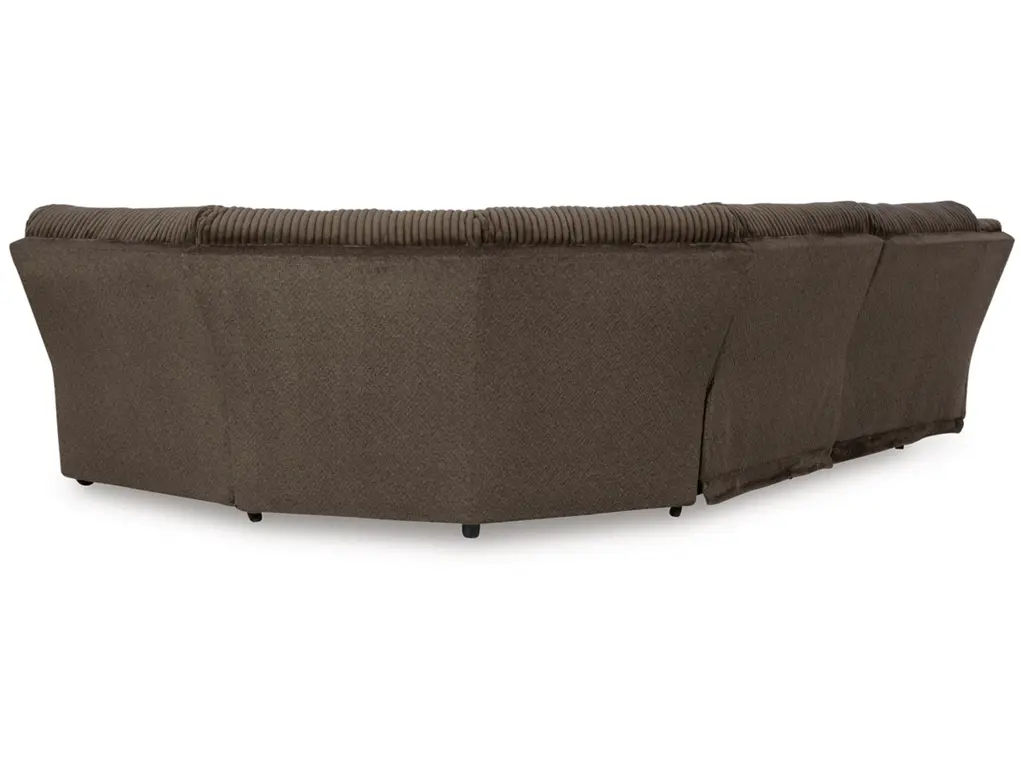 Experience unparalleled comfort with the Top Tier reclining sectional. It’s a stylish and invitingly soft look—made all the more appealing by cozy corduroy cushions that feel great and add a touch of texture. The rich chocolate brown upholstery effortlessly blends into your decor, making it a gorgeous addition to your home. So sit back and unwind in this spacious set, perfect for gatherings with friends and family.