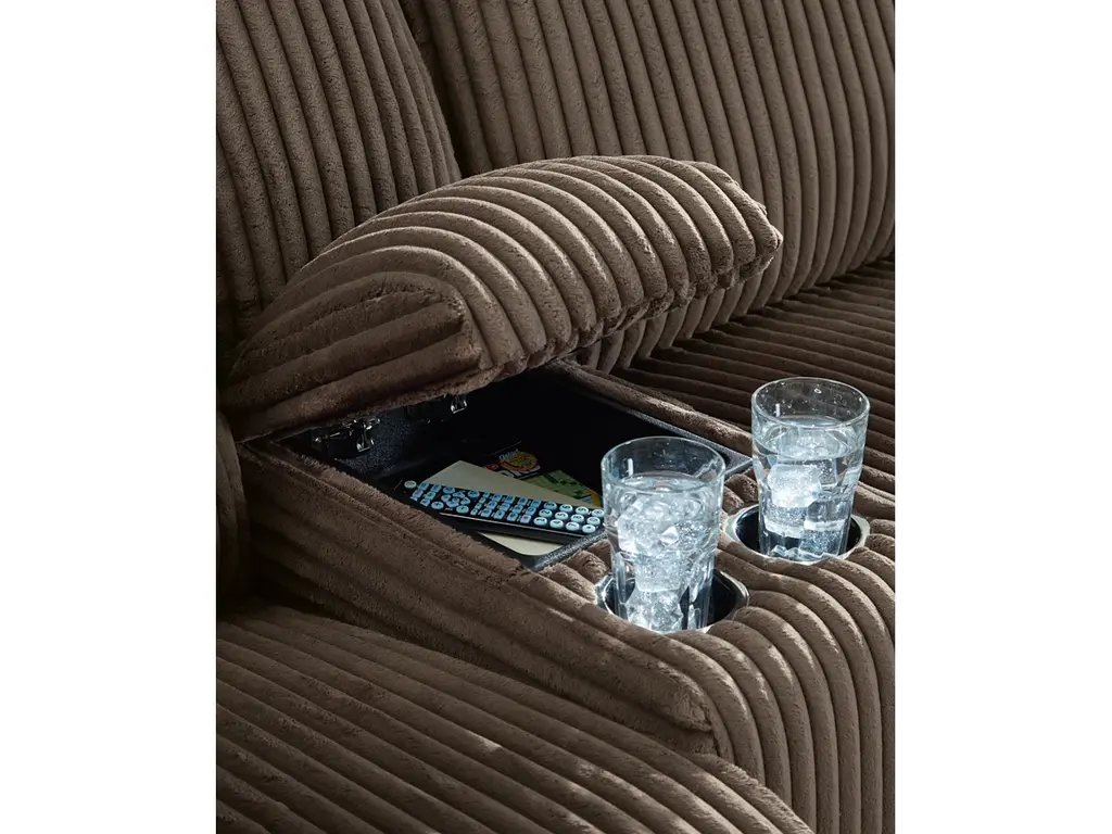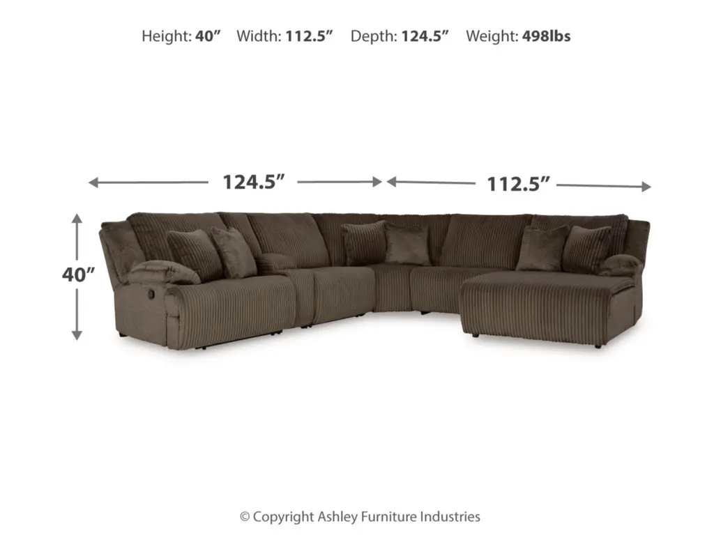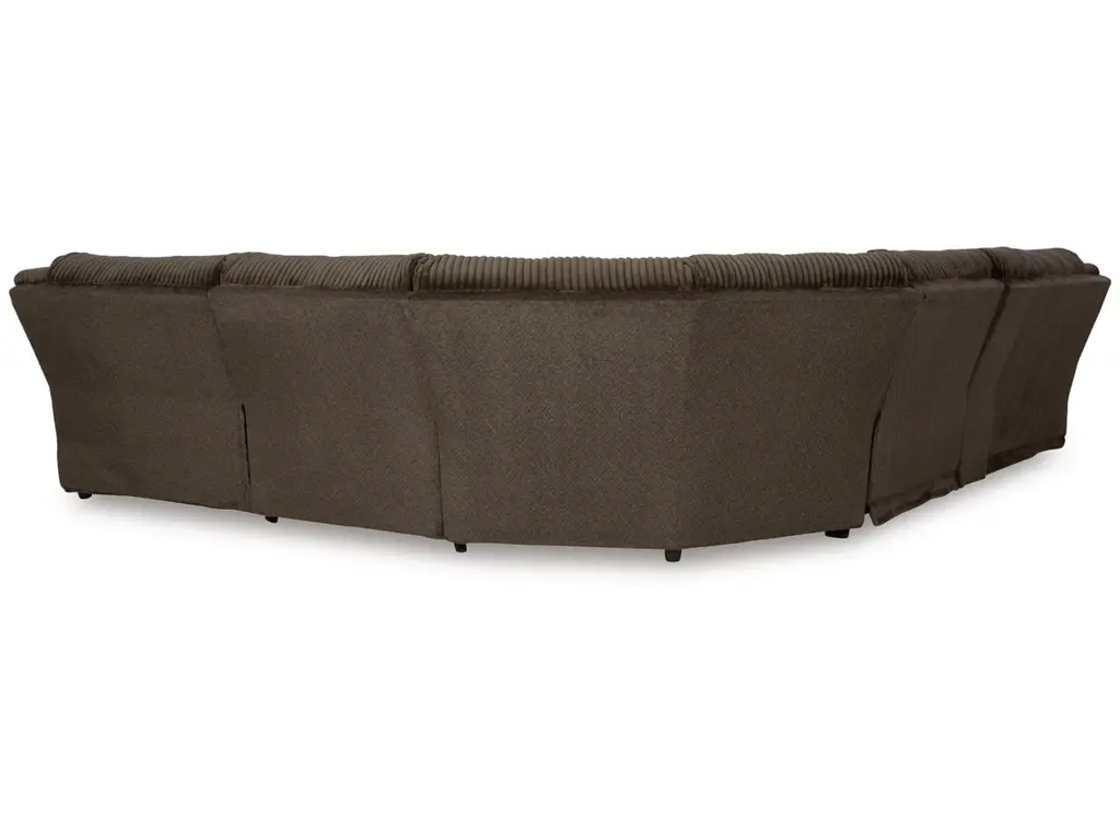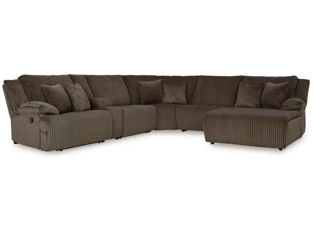 Experience unparalleled comfort with the Top Tier reclining sectional with chaise. It’s a stylish and invitingly soft look—made all the more appealing by cozy corduroy cushions that feel great and add a touch of texture. The rich chocolate brown upholstery effortlessly blends into your decor, making it a gorgeous addition to your home. So sit back and unwind in this spacious set, perfect for gatherings with friends and family.