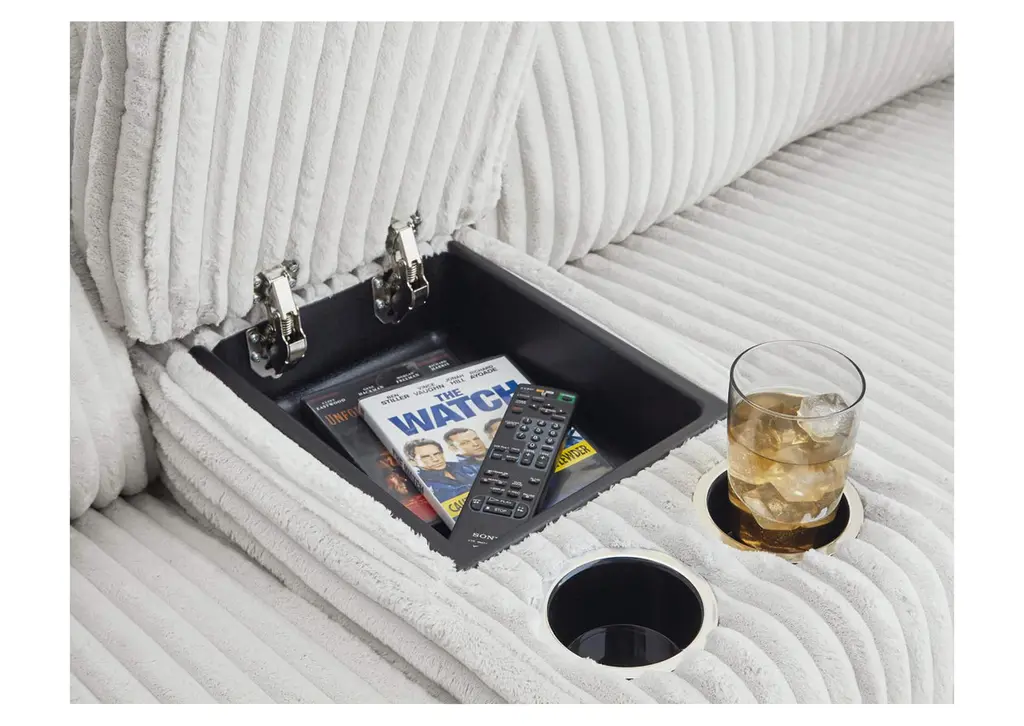 Experience unparalleled comfort with the Top Tier reclining sectional with chaise. It’s a stylish and invitingly soft look—made all the more appealing by cozy corduroy cushions that feel great and add a touch of texture. The neutral hue effortlessly blends into your decor, making it a gorgeous addition to your home. So sit back and unwind in this spacious set, perfect for gatherings with friends and family. Weight 498.000 lbs. (224.1kgs.)