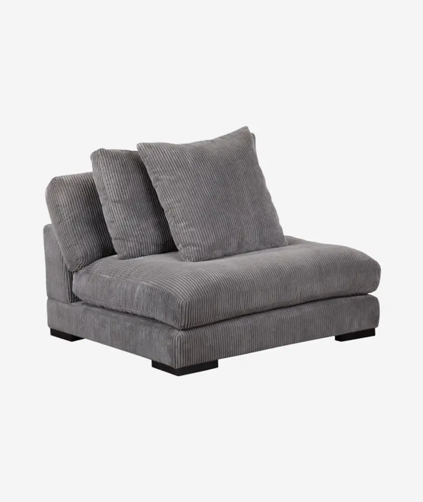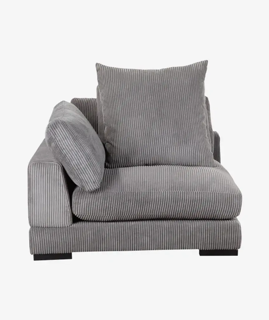 Seriously comfortable, seriously stylish - the Tumble is an ideal modular dream. Either at home or in your commercial space, you can get cozier & cushier using furniture that encourages the softer moments of calm and focus - just like Tumble's mix and match modular pieces. Tumble's corduroy naturally softens the sharp edges and hard lines of other accents like coffee and end tables with its inherent plushness. Framed in solid eucalyptus wood with extra, fully down-filled, removable back cushions. This sectional's soft corduroy will immediately add dimension, intrigue, lift, and comfort to any environment.