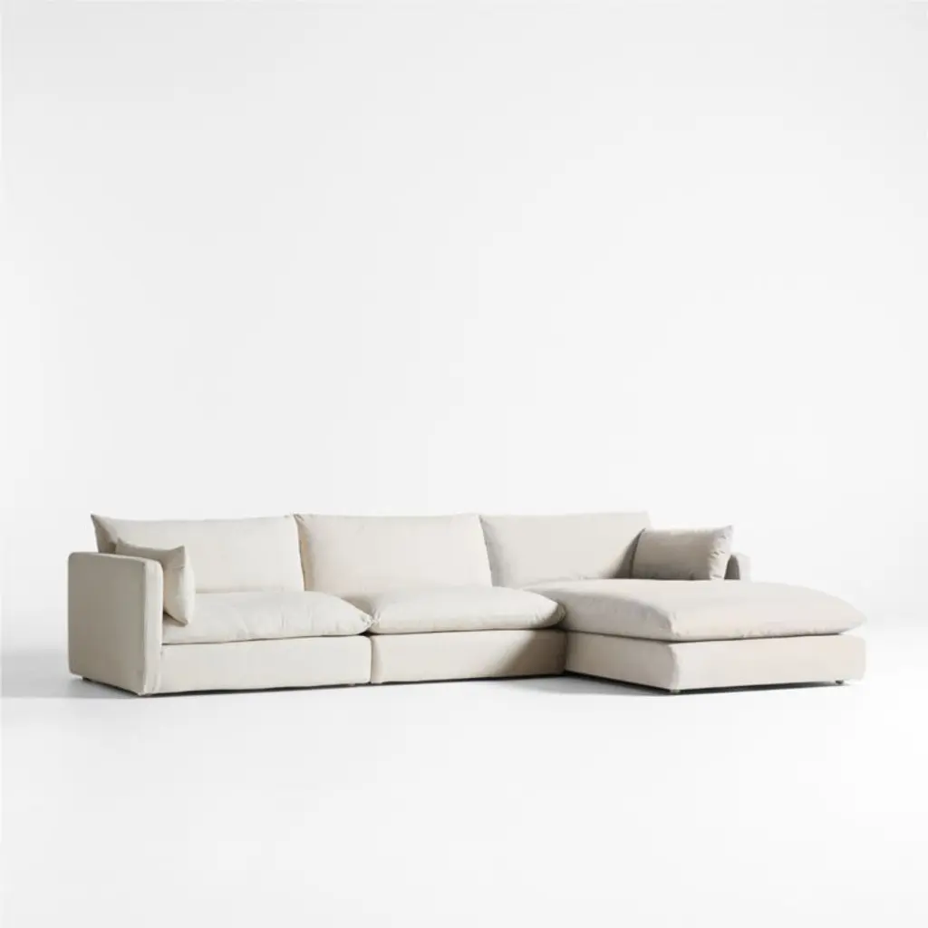Unwind Modular 3-Piece Slipcovered Sectional Sofa With Chaise Lounge