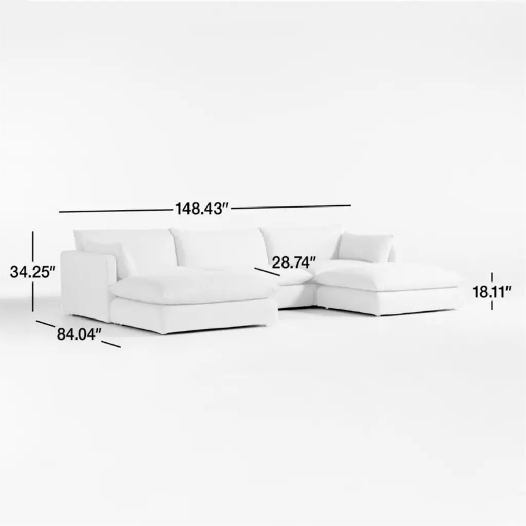 Unwind Modular 5-Piece U-Shaped Slipcovered Sectional Sofa With Double Ottoman