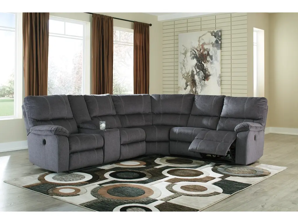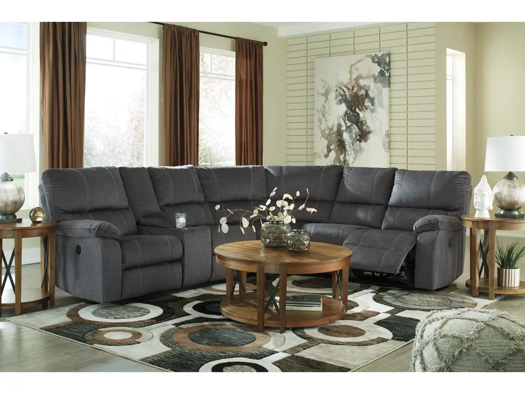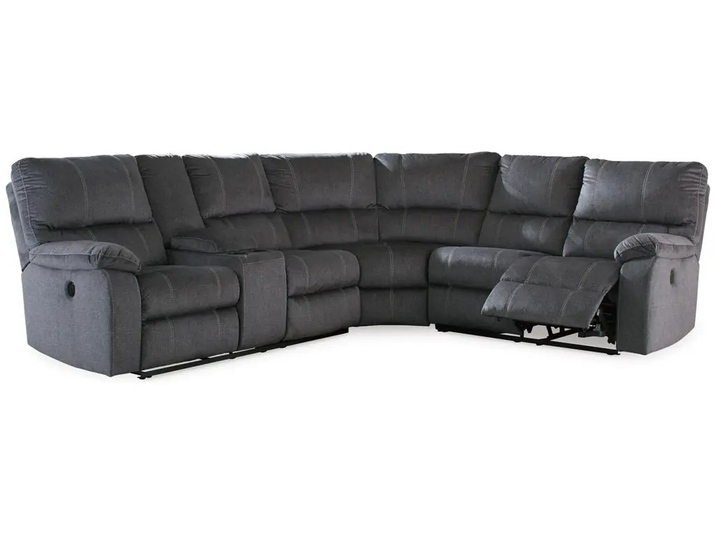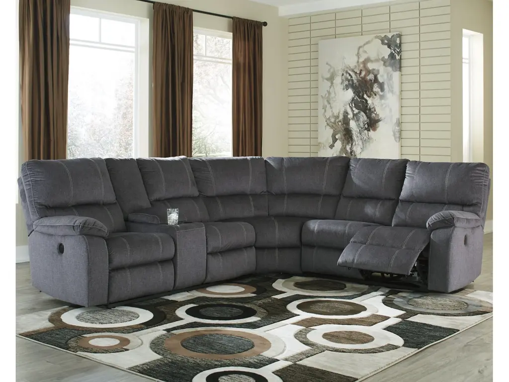 Dressed to impress even the most discerning urban hipster, the Urbino power reclining sectional in charcoal gray rocks a cool look with an even better feel. Rest assured, this designer sectional is covered in a padded microfiber upholstery that’s love at first touch. Accenting the clean lines and channel tufting: prominent jumbo stitching that adds a fresh, fashion-forward element and distinctive flair.