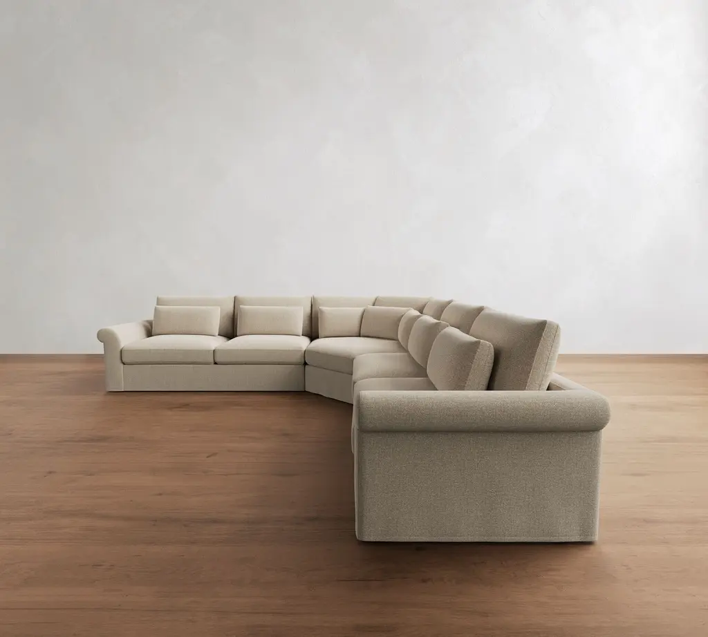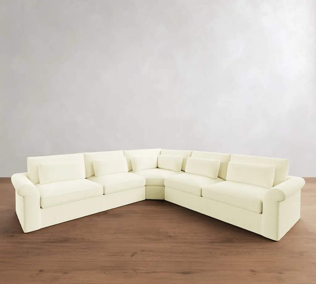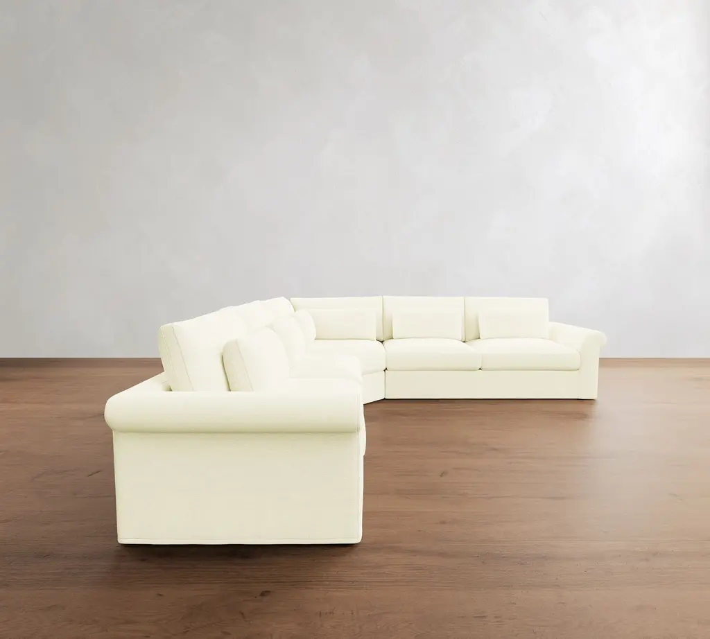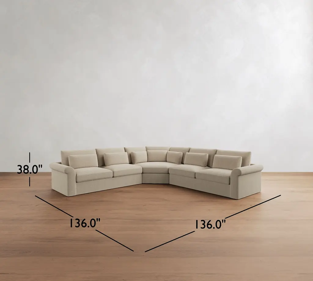 Westwood Roll Arm Deep Seat Slipcovered 3-Piece L-Shaped Wedge Sectional (136")