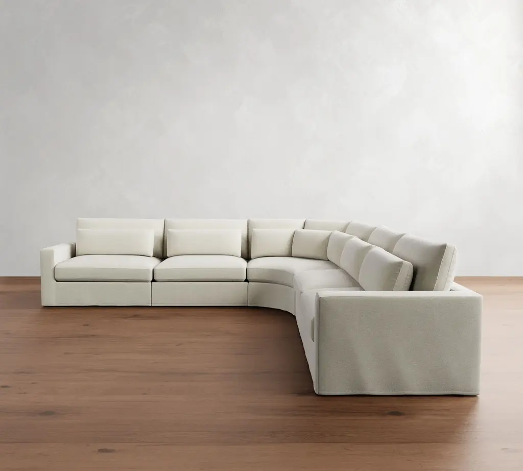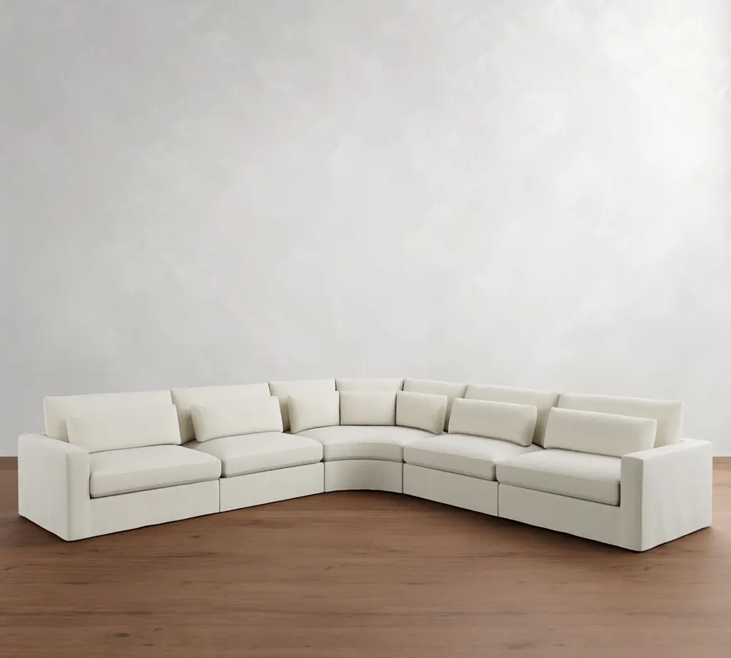 Westwood Square Arm Deep Seat Slipcovered 5-Piece Curved Wedge Sectional (156")