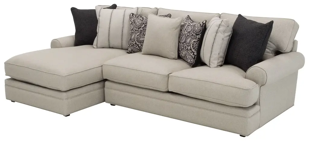 Grand but cozy. Stylish but fuss-free. With the Wilkinson 2-pc. living room collection, you can have the best of every world! This set's upholstery looks stunning, but is durable enough to stand up to years of family use. It has such a great look, too, with myriad accent pillows featuring a variety of eye-catching patterns. With the pieces in this group, you have a number of sectional configuration options, and you can pair any of them with the on-trend accent chair and cocktail ottoman, each of which echo the pillows' prints for a professionally designed look.