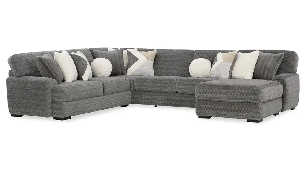 Grand but cozy. Stylish but fuss-free. With the Wilkinson 2-pc. living room collection, you can have the best of every world! This set's upholstery looks stunning, but is durable enough to stand up to years of family use. It has such a great look, too, with myriad accent pillows featuring a variety of eye-catching patterns. With the pieces in this group, you have a number of sectional configuration options, and you can pair any of them with the on-trend accent chair and cocktail ottoman, each of which echo the pillows' prints for a professionally designed look.