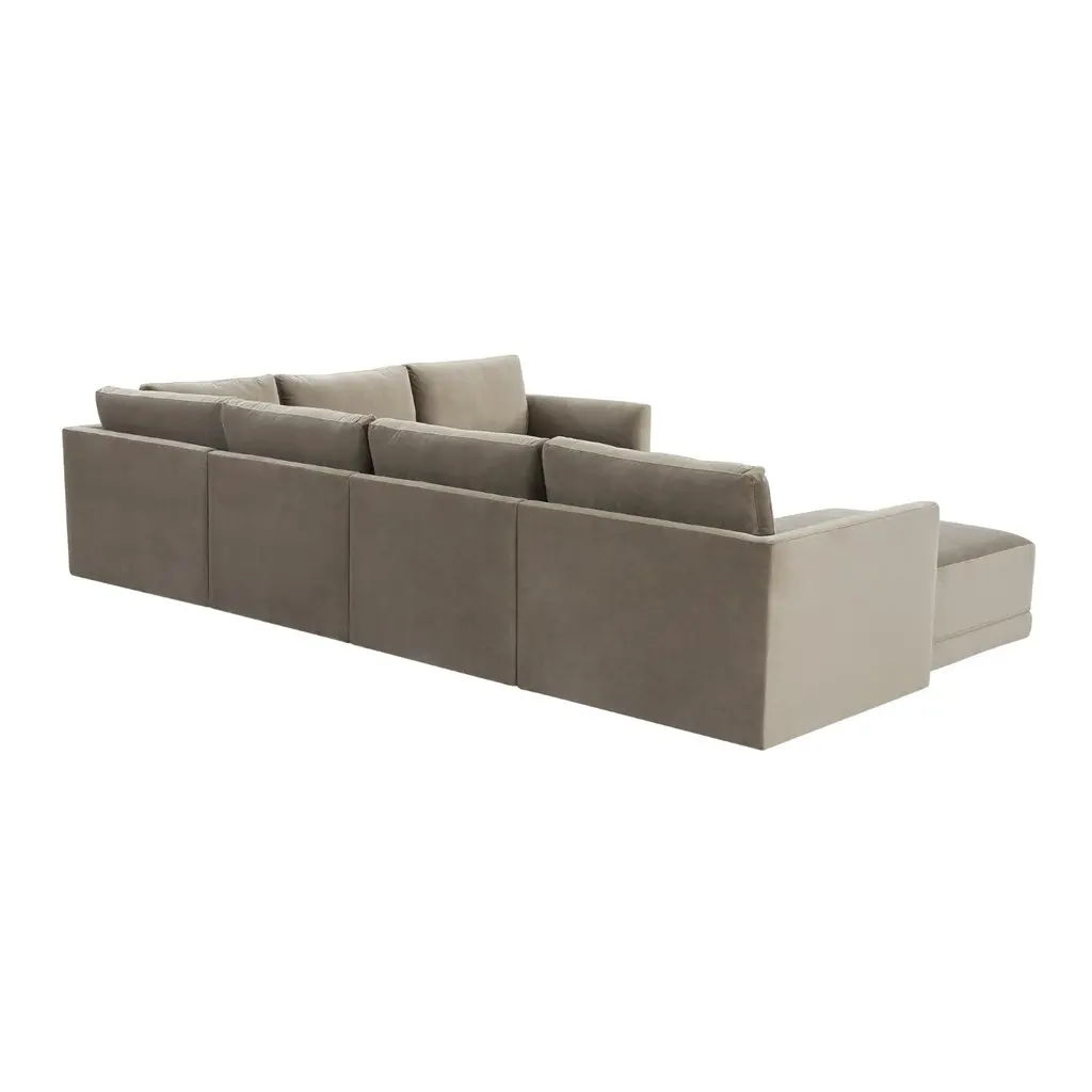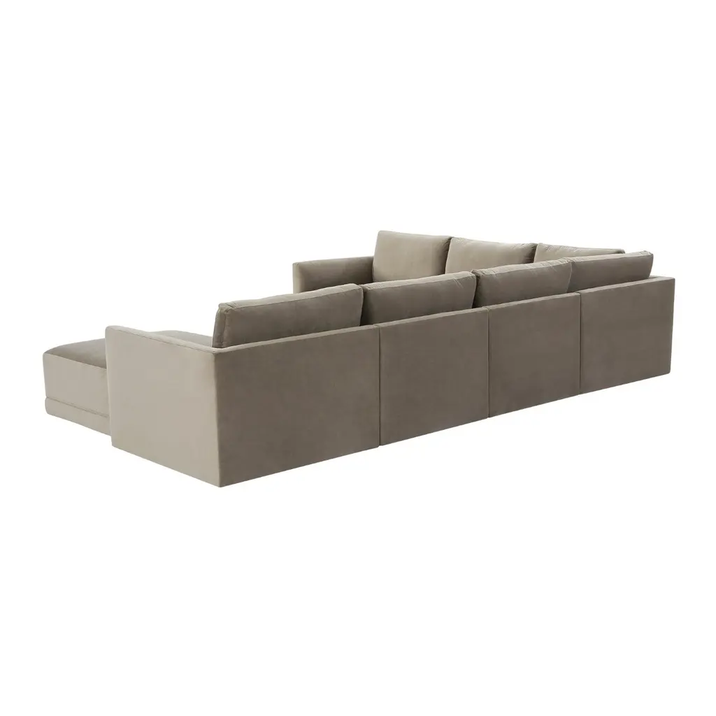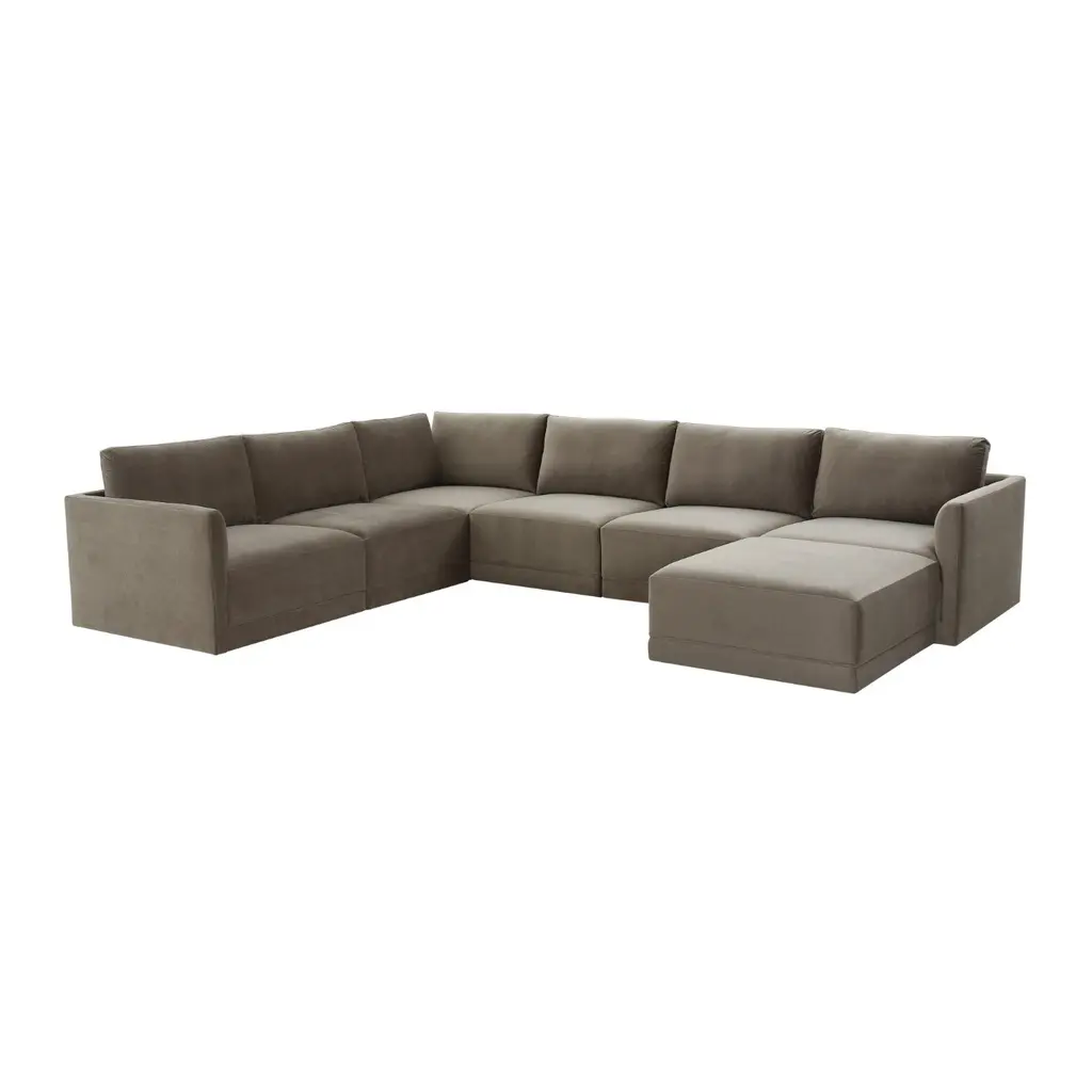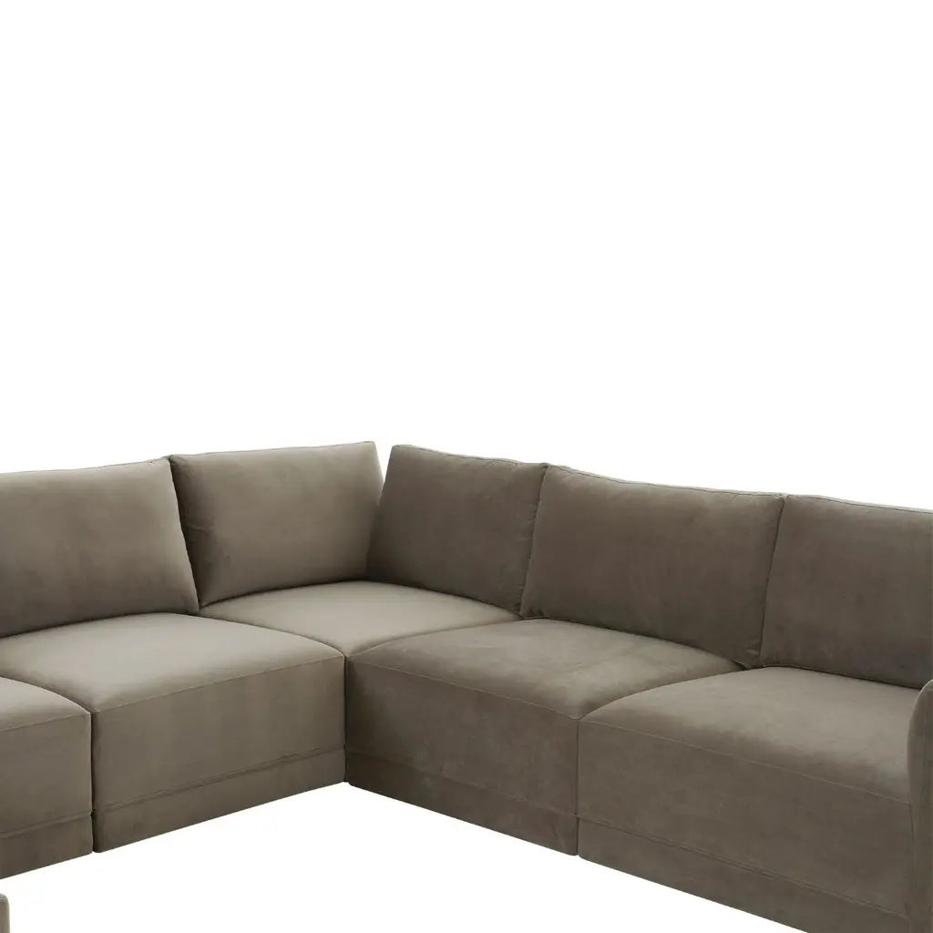 Polished seating at its finest, the Willow Modular Collection, does not disappoint. Simultaneously firm and extraordinarily comfortable, the Willow Modular Collection offers stylish, elegant lounging. Available in 3 luxurious velvet finishes, the Willow Modular Collection can be configured in many ways that will best suit your home. Part of the Willow Collection by TOV Furniture Sectional includes LAF Chair, 3x Armless Chairs, Corner Chair, RAF Chair, and Ottoman Charcoal velvet upholstery Also available in charcoal and navy velvet Connecting brackets connect pieces from the bottom Solid pine and plywood frame High-gauge sinuous springs provide cushion support Seat and back cushions are made with high-resilience foam