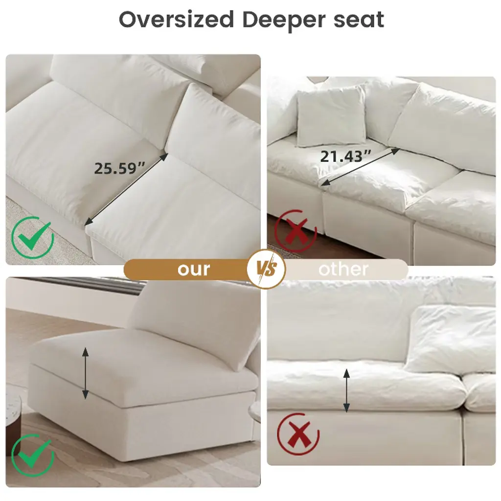 Wjshome 5 Pcs Cloud Modular Sectional Sofa For Livingroom,120.45inch Down Filled Convertible Couches For Office Apartment,v Shaped,white